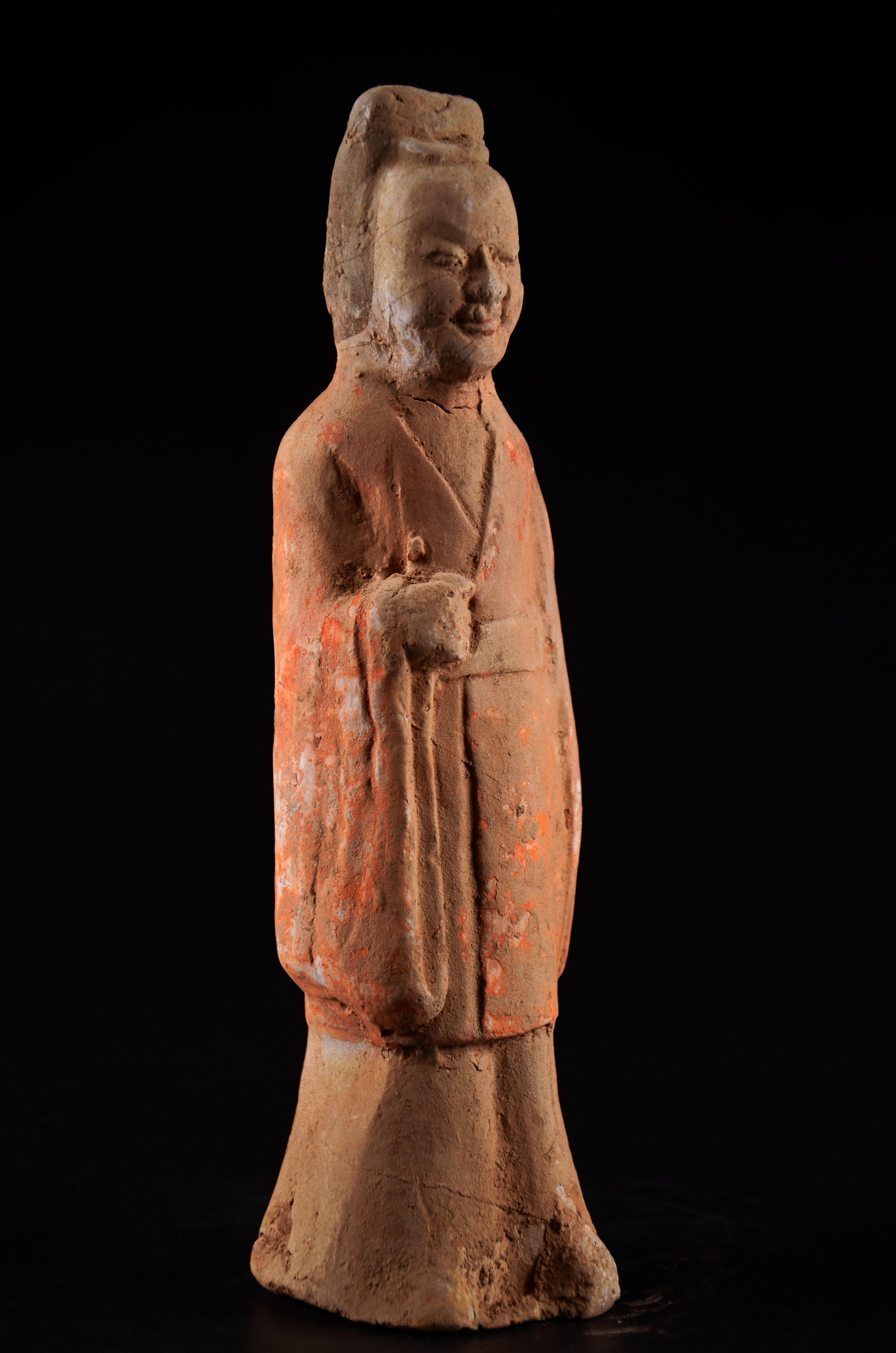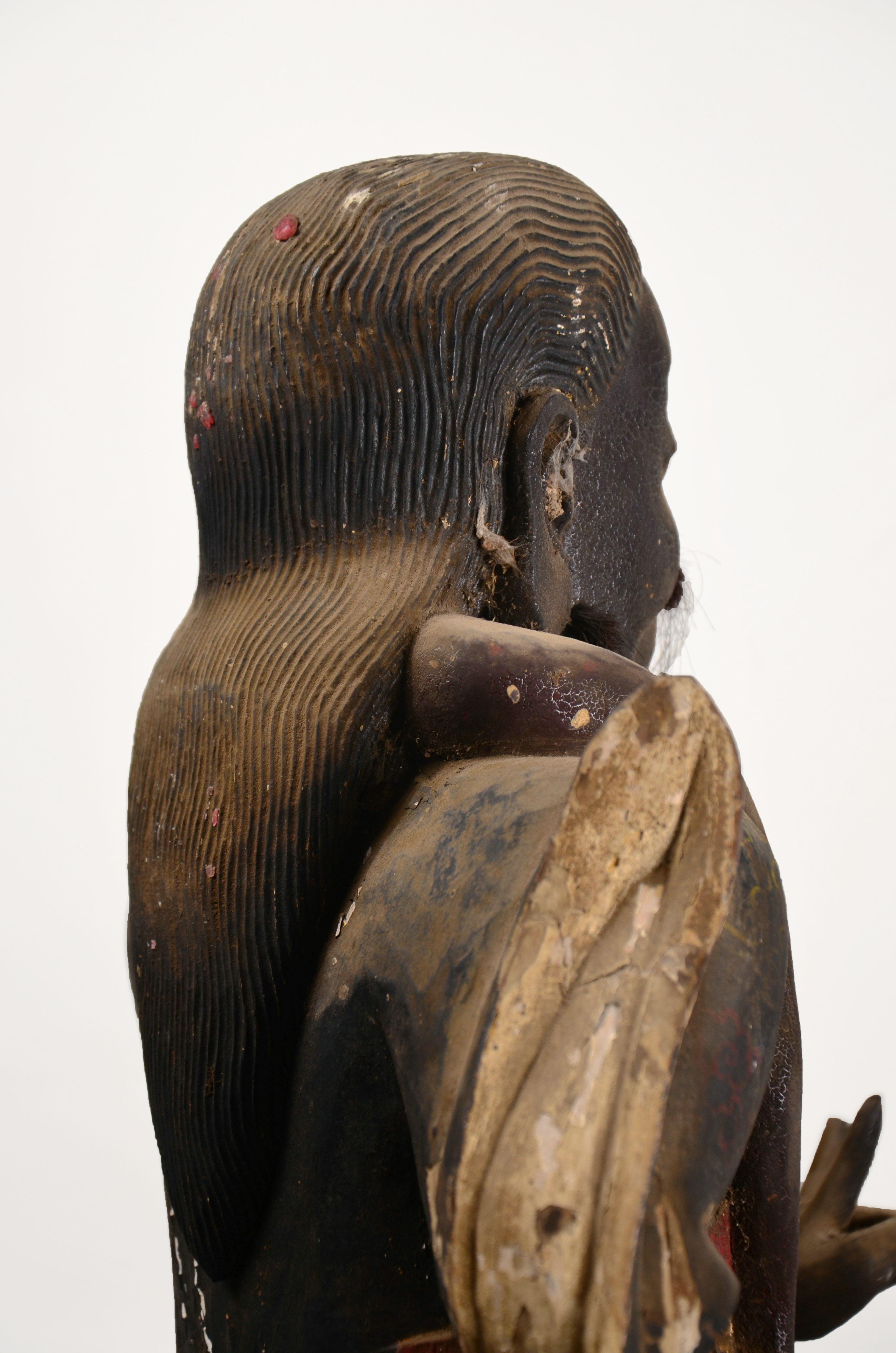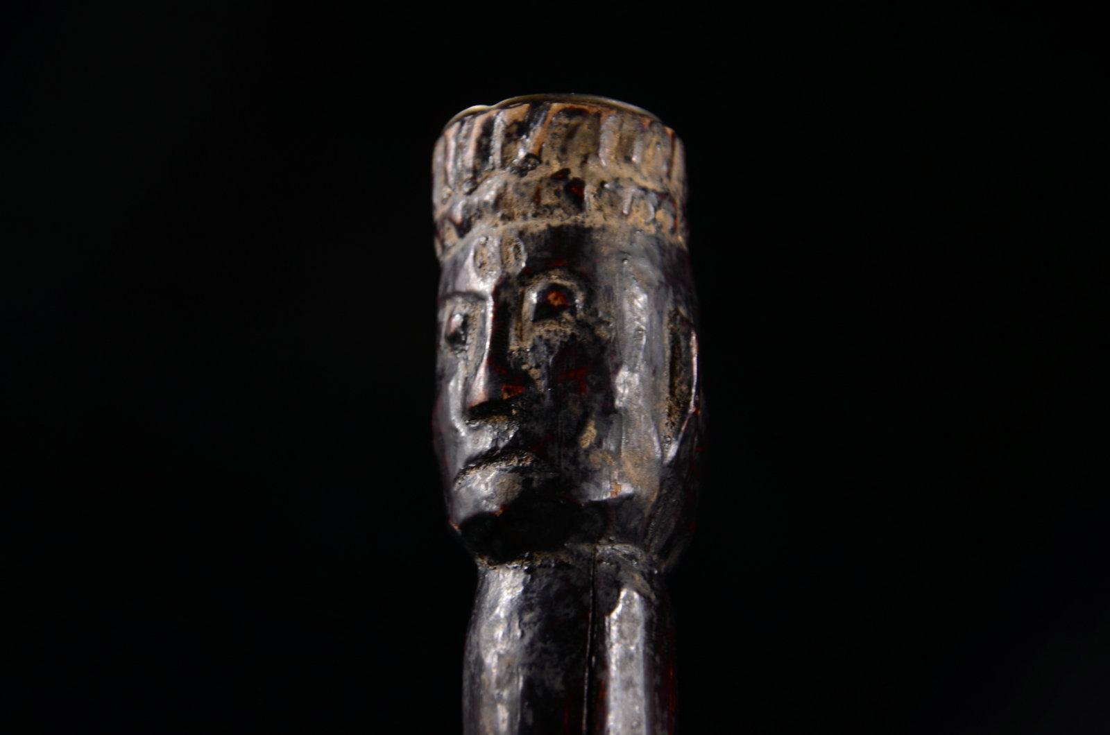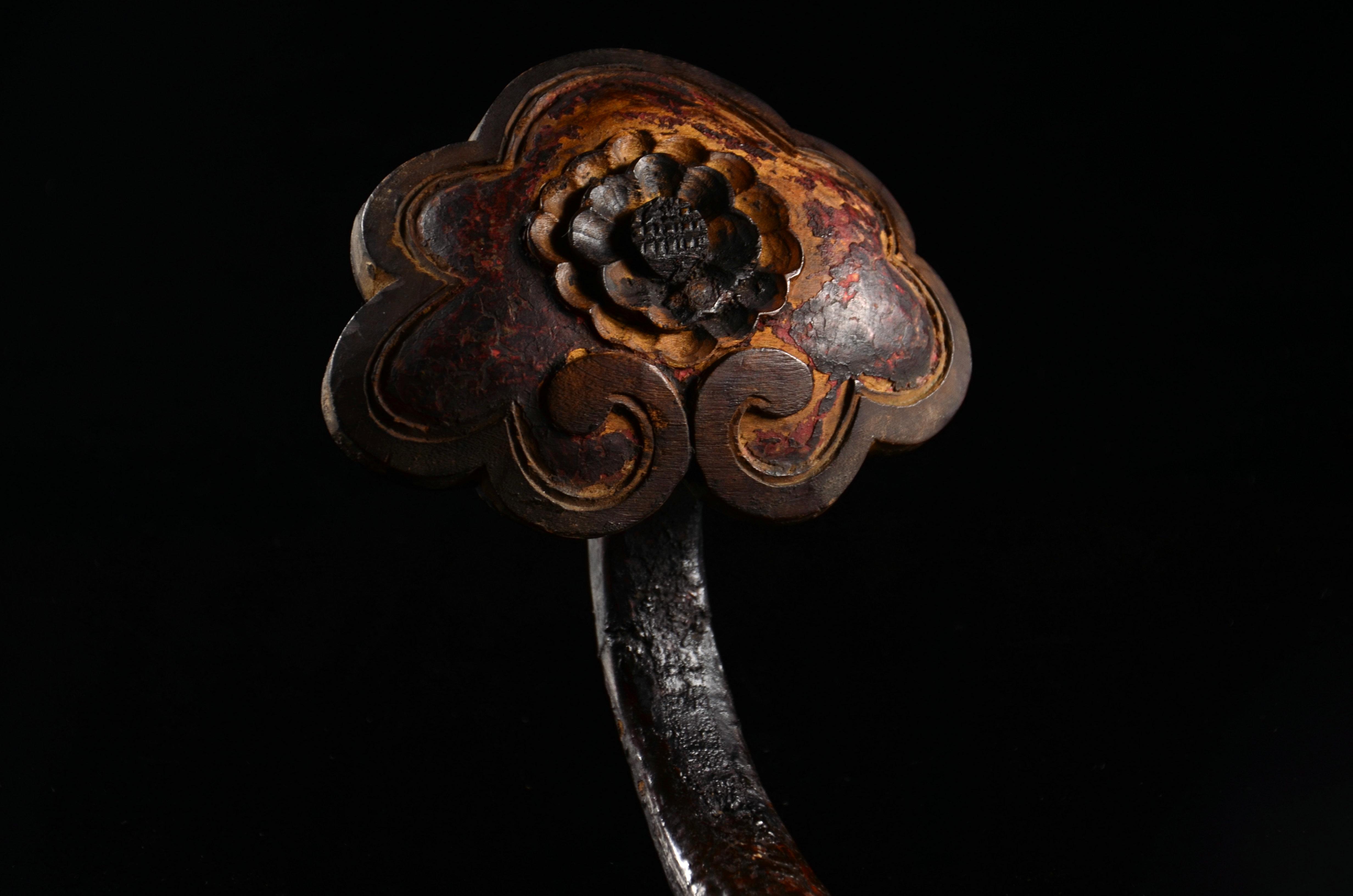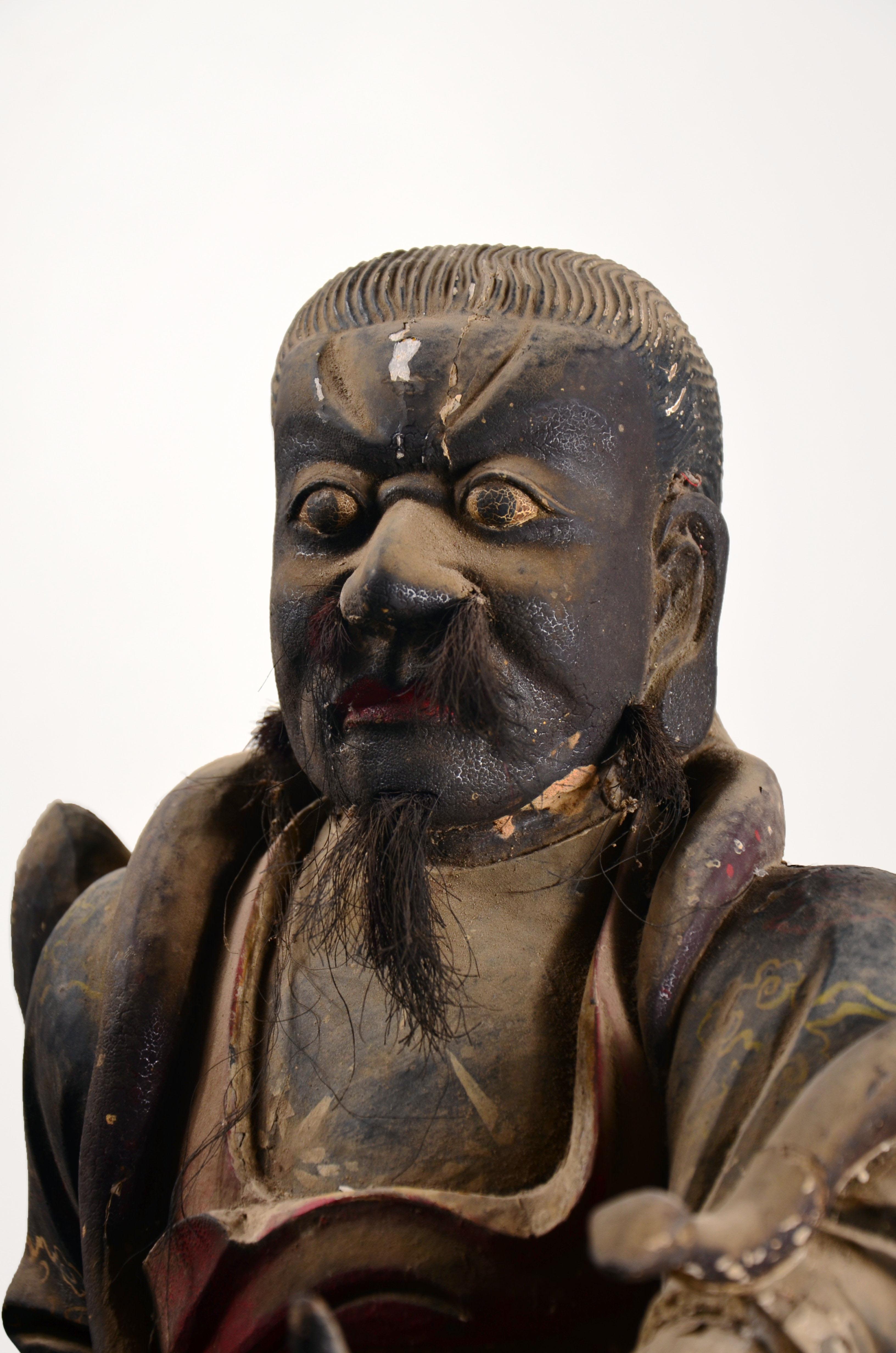 我不玩木造像,以及……所有的宗教造像,这个断代是前任主人告诉我的,不要问我依据。在一个私人文玩群拍得的。当时就觉得开脸真好,就要了。外表贴金基本脱落,残存少许,剑身也没了,以后找时间做个剑身接好它吧。