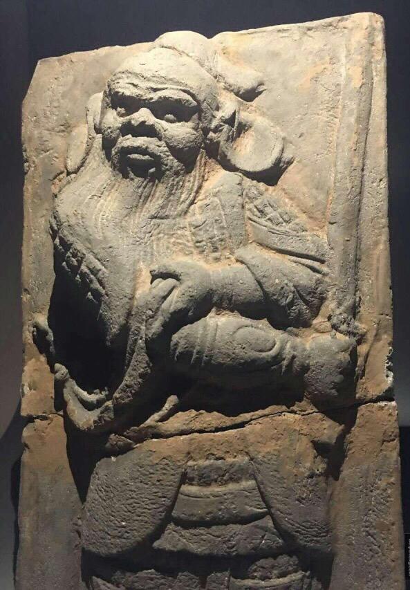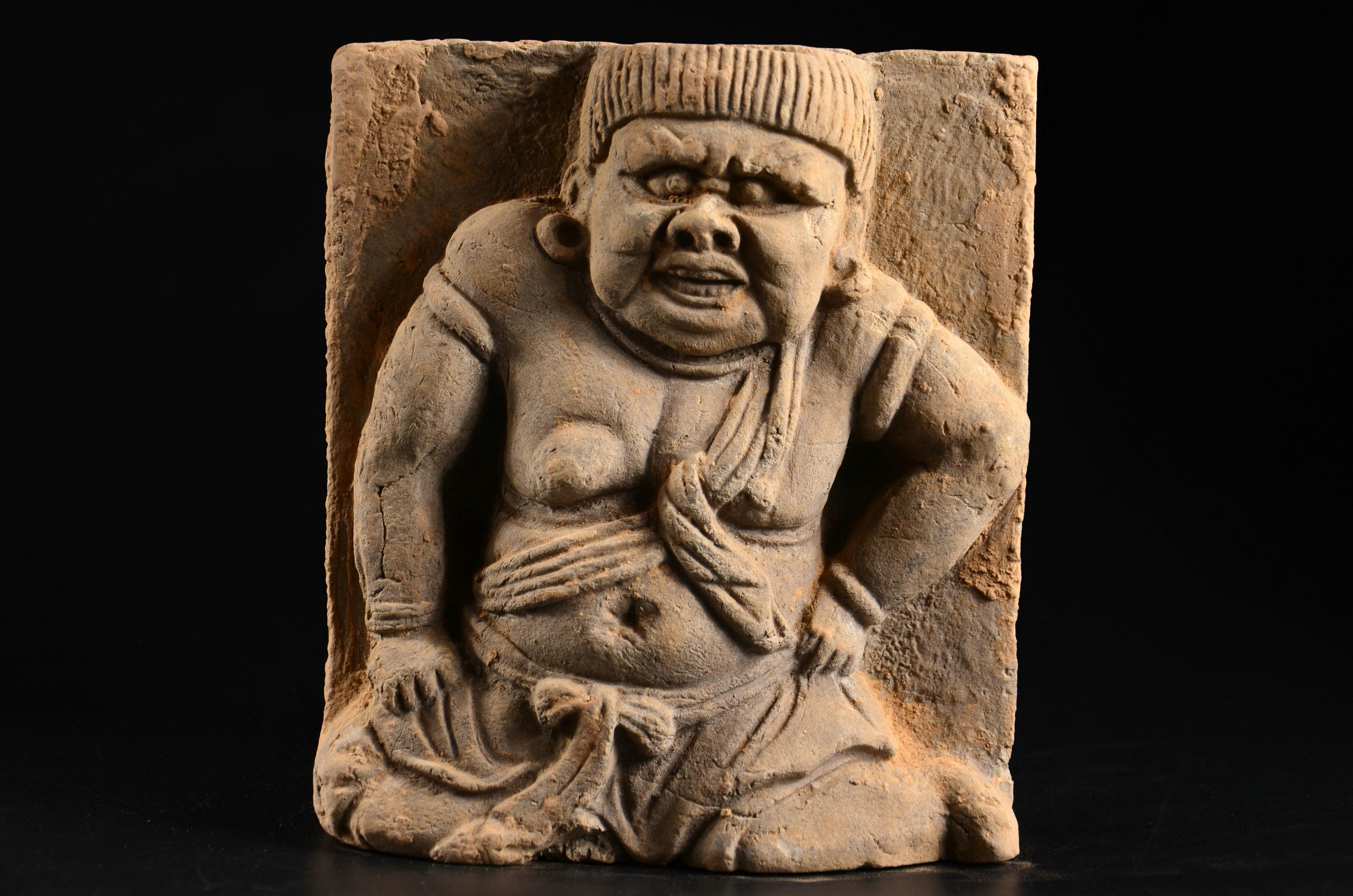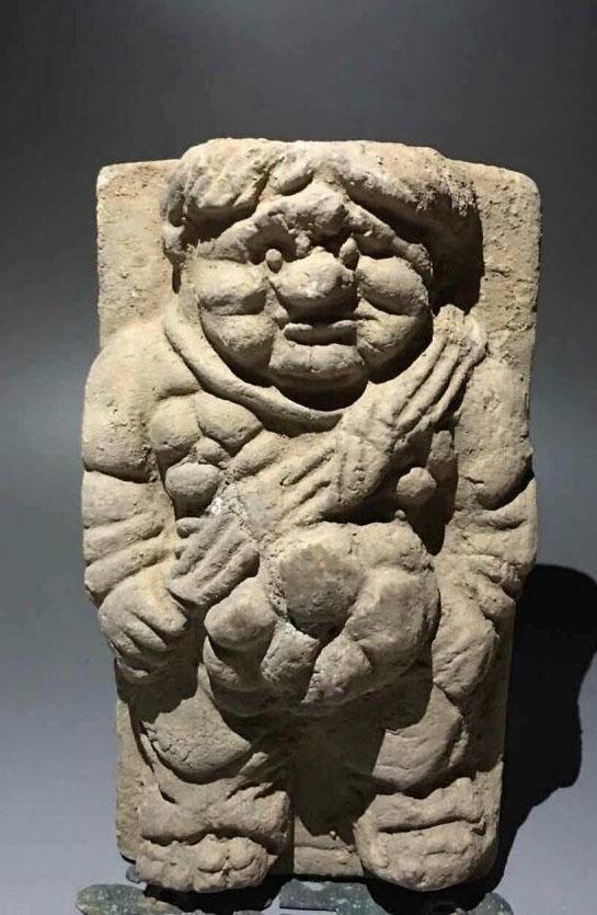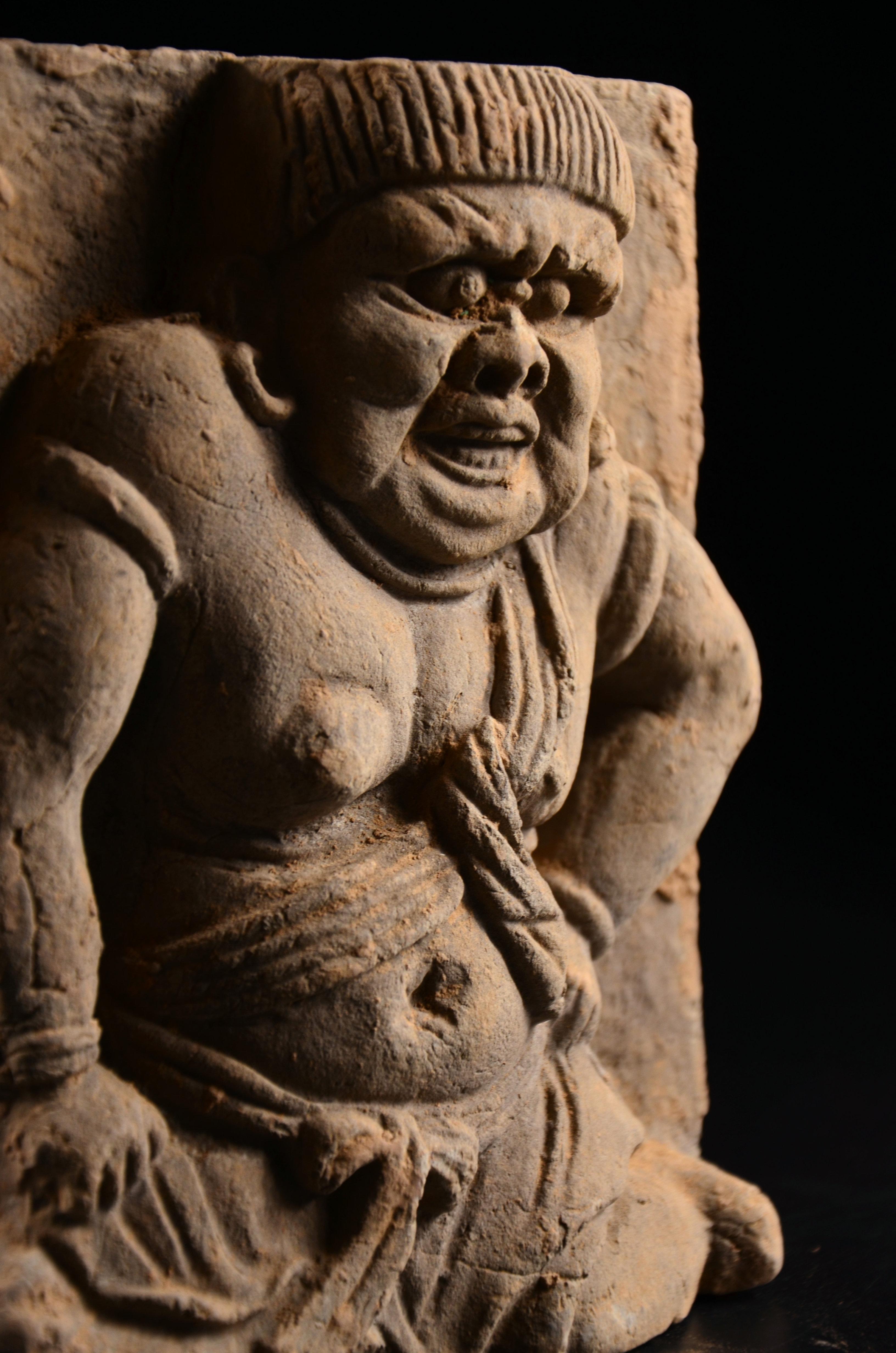 这个契丹力士戴大耳环,仁丹胡,髡发,咪咪周围还特地点点点戳出了一圈乳晕( ZiL :点的与其说是乳晕,不如说是乳晕上的毛囊。乳晕长毛体现雄性激素水平。)……我也是醉了。身下莲座,明显是佛教影响。这个也想凑一对的,不果,遗憾。