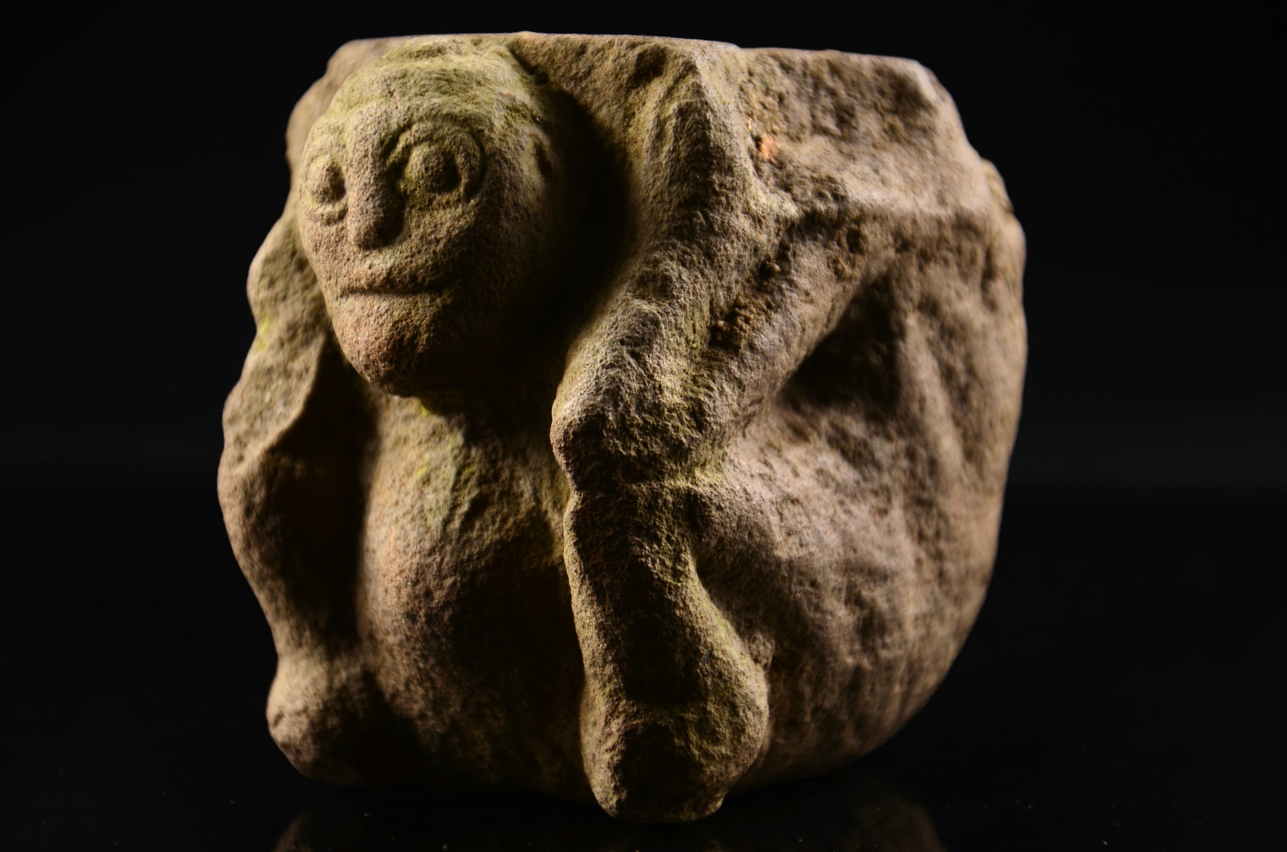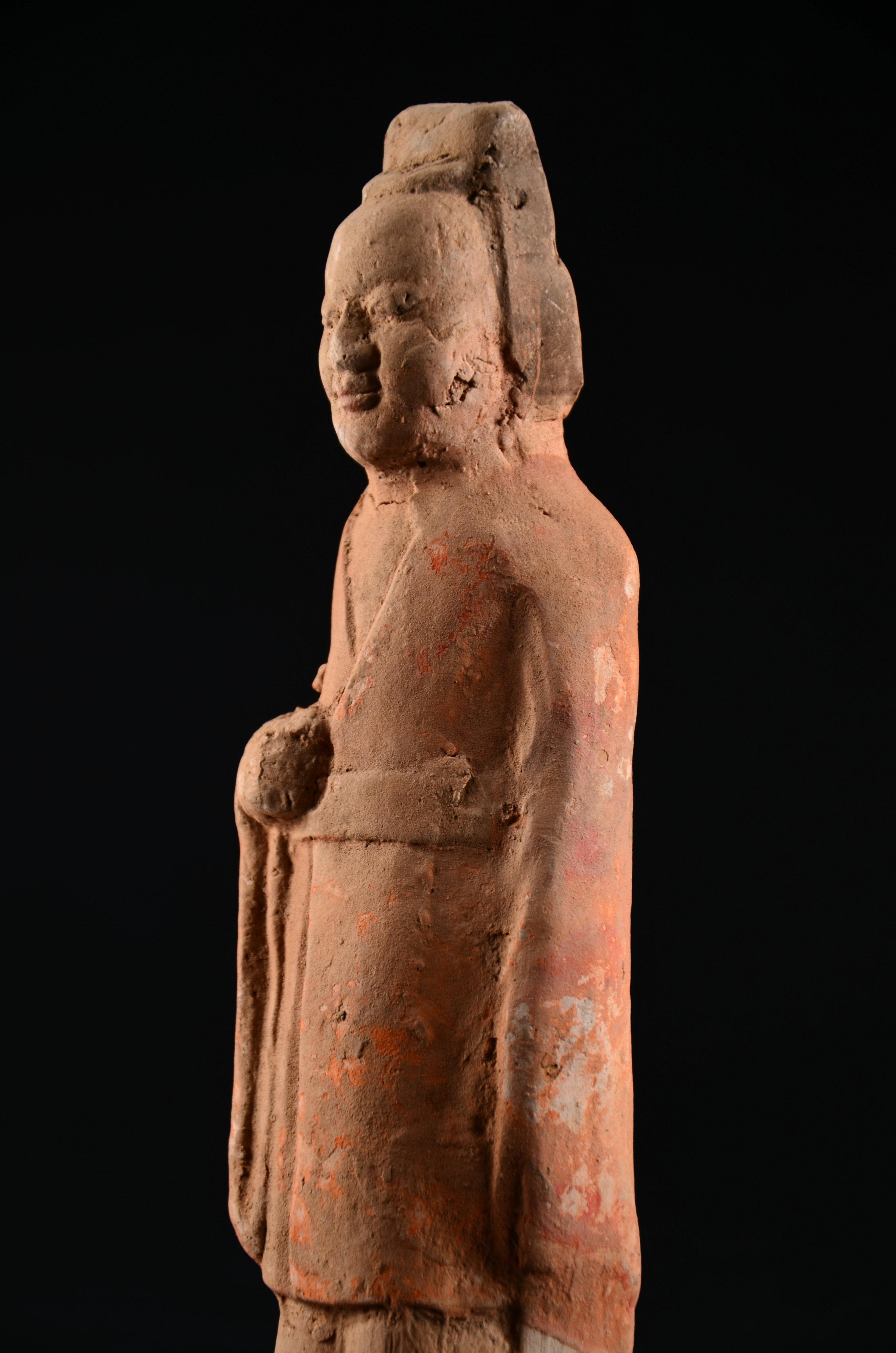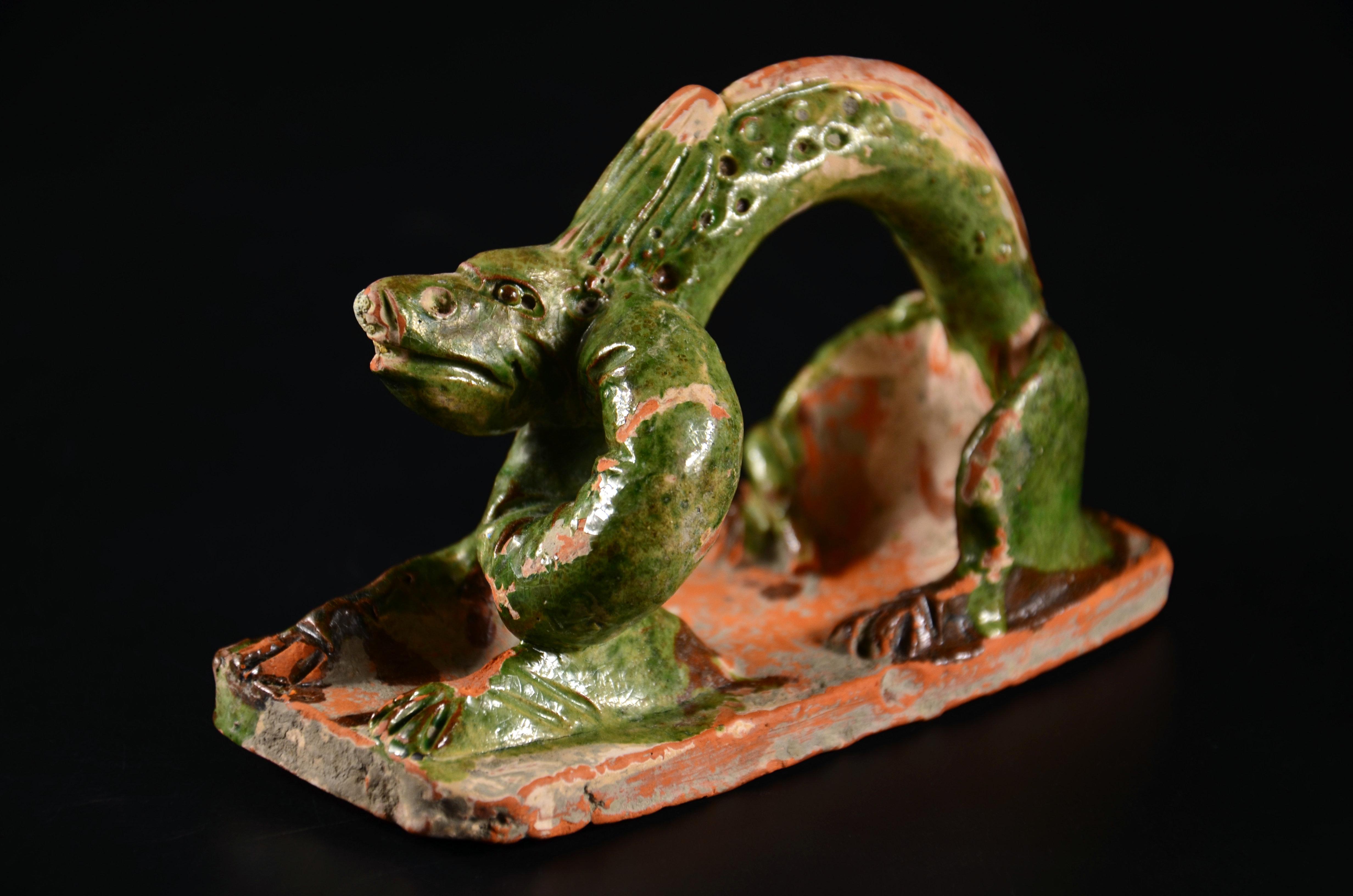 这个契丹力士戴大耳环,仁丹胡,髡发,咪咪周围还特地点点点戳出了一圈乳晕( ZiL :点的与其说是乳晕,不如说是乳晕上的毛囊。乳晕长毛体现雄性激素水平。)……我也是醉了。身下莲座,明显是佛教影响。这个也想凑一对的,不果,遗憾。