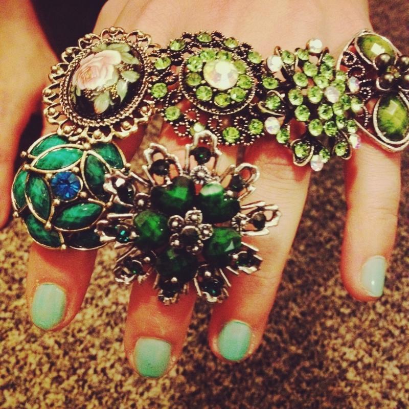 (话说我完全不知道我为什么有这么多,都是按照色系分的,绿色系黑色系红色系金色系,还有宝石系,每个都有十来枚)