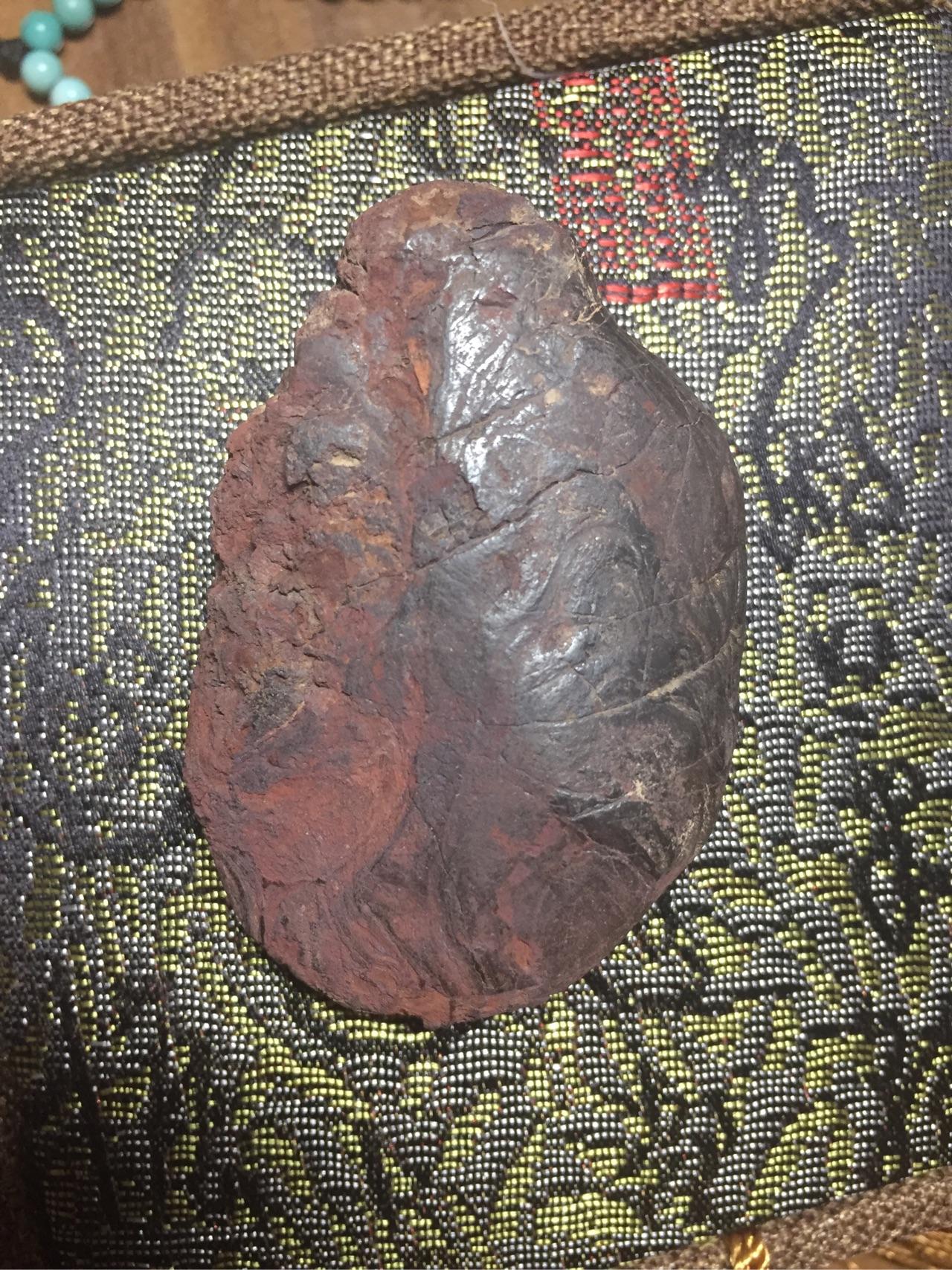 大家看看,前两图是假冒的伊丁陨(我们称之为山料),第三图是我的那个真东西。非常的逼真。但是根据陨石的几大特征我们可以观察出来,假冒的伊丁陨没有熔流线,熔壳也是没有金属的光泽。再这里多啰嗦几句话给大家介绍一下伊丁陨,伊丁陨是咱们中国青海湖地区特有的陨石,属于史前陨石,由于年代久远,一般都会有石英的伴生或者与当地的岩石融为一体。古代称其天宝石,非常符合咱们中国人喜爱红色的审美。所以会有一些家伙拿出假东西骗人,请大家千万小心。(打个预防针,虽然我知道大多数人接触不到。。。)