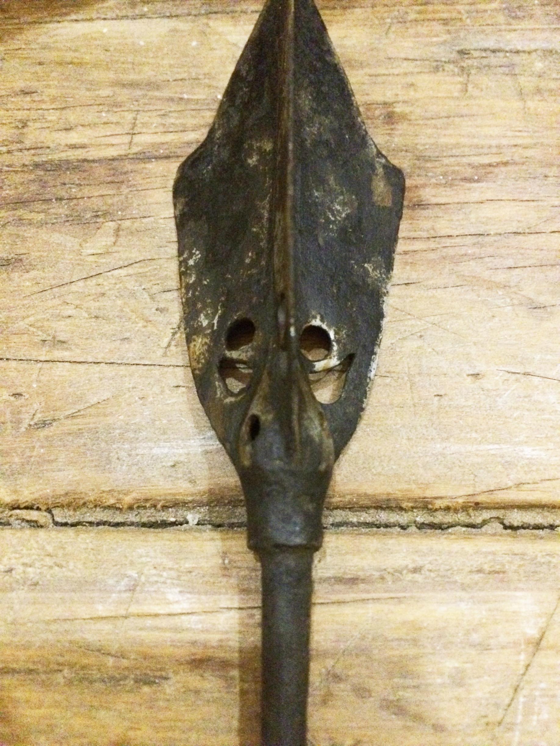 双回纹铁枪,枪头双槽和形制与美国大都会那杆著名枪头一致,但是人家那个等级高太多精美好多……我就不贴出来羞辱自己了……5555……提这茬就是说个断代依据。另外,这种六棱库也多见于明。