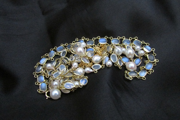 手作~ 用一条不好看的月光项链配AKOYA改的~ 美哭~