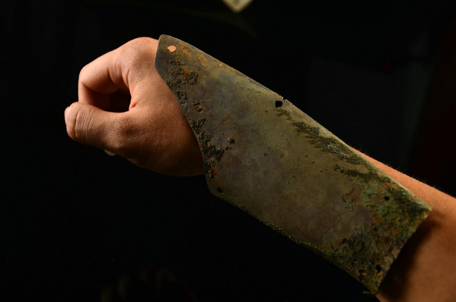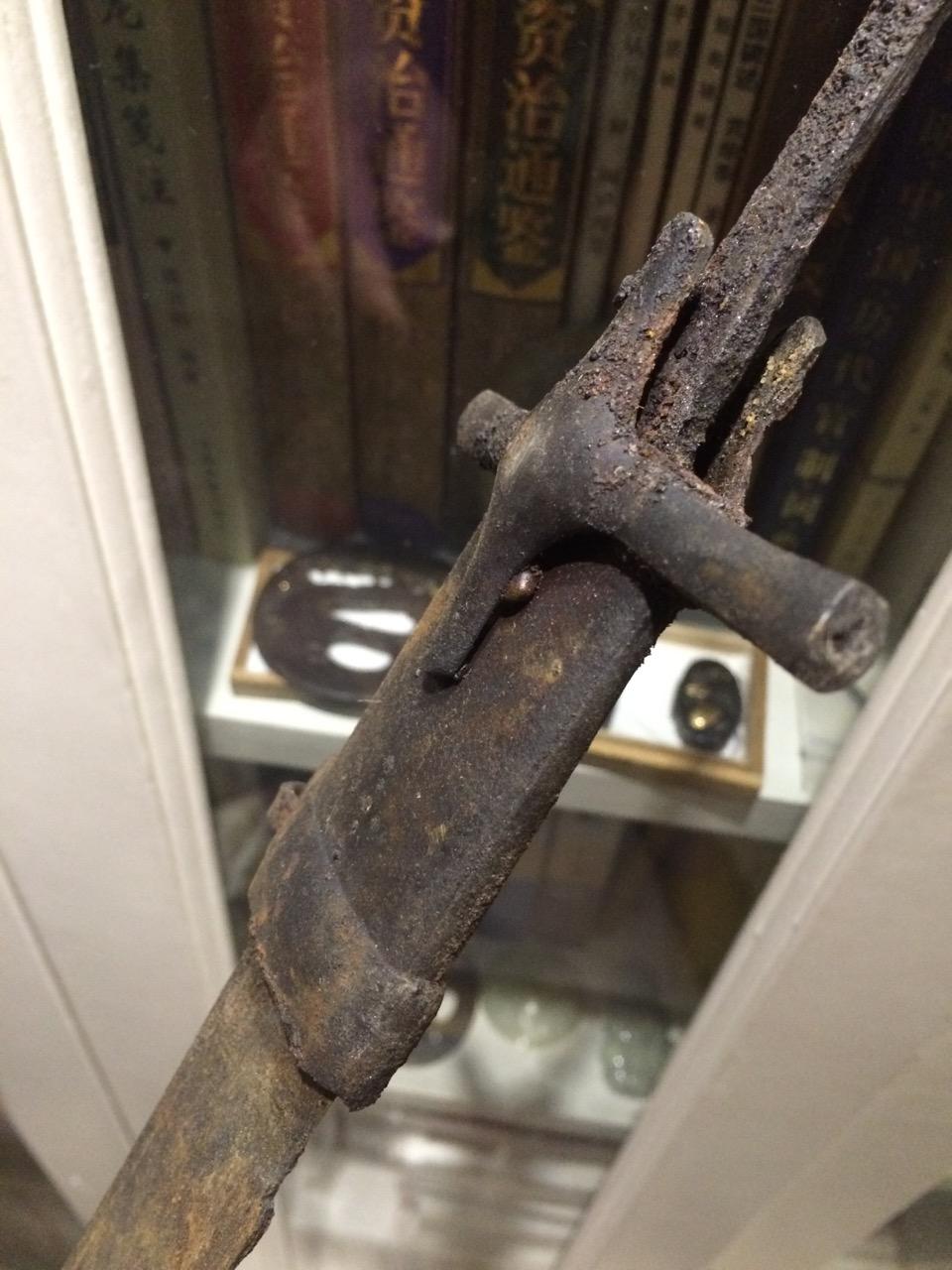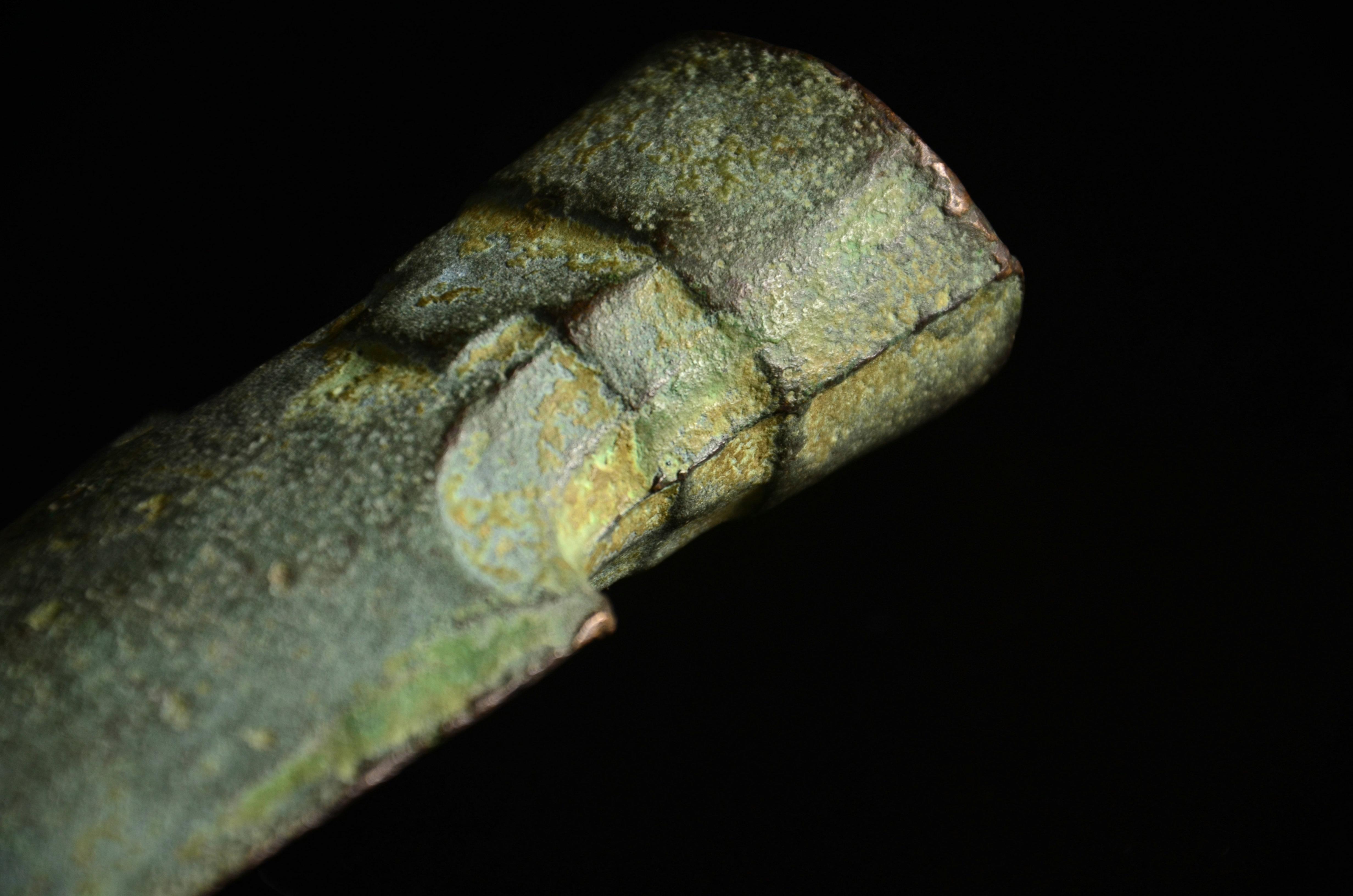 也是史料价值,可以知道古人修补青铜剑小伤,是怎么个工序。