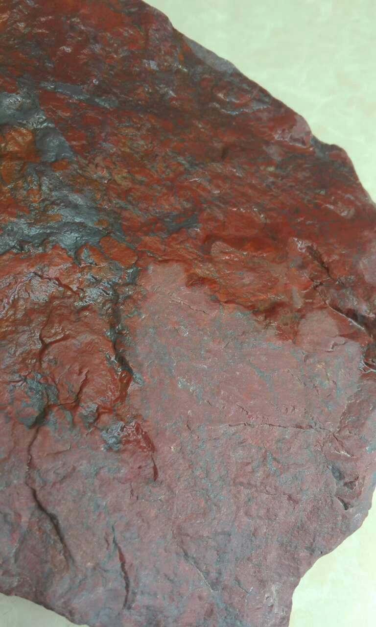 啊,突然想起来了,所含元素也是判断是否为陨石的重要条件!陨石中一般会含有镍,实际上,也只有在陨石上,镍元素才会以原子形态出现的,镍在经过高温燃烧后一般会呈现红色。比如下图我这块彩斑的石头,上面的红色,就是镍燃烧后形成的产物。