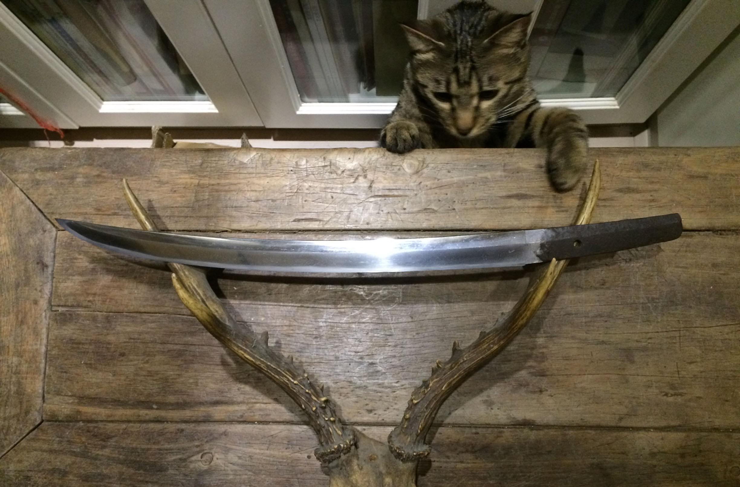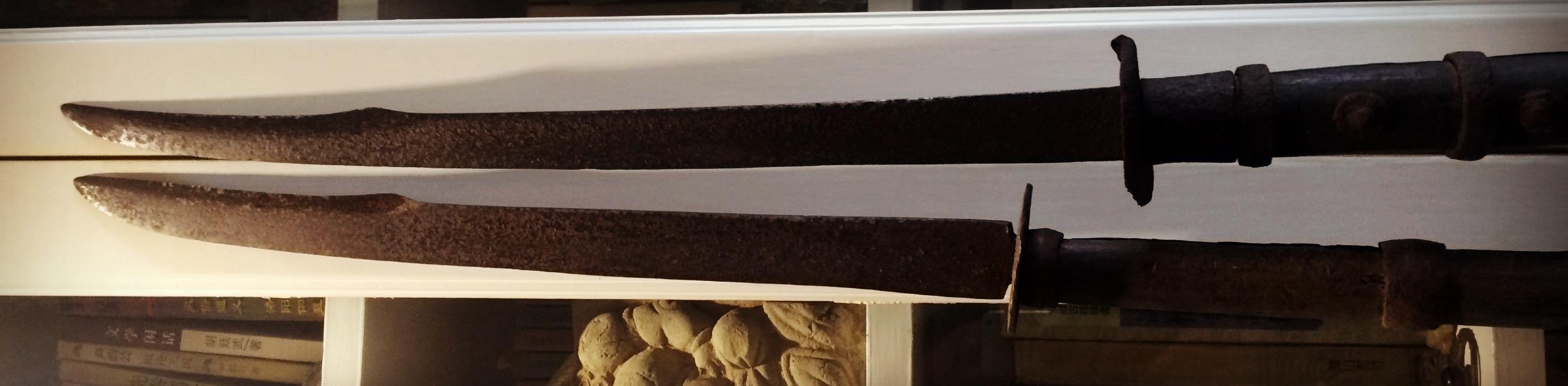 第一图,两口看起来不很起眼的刀。其实是可以进博物馆当教材的,所谓史料价值,就是如此了。