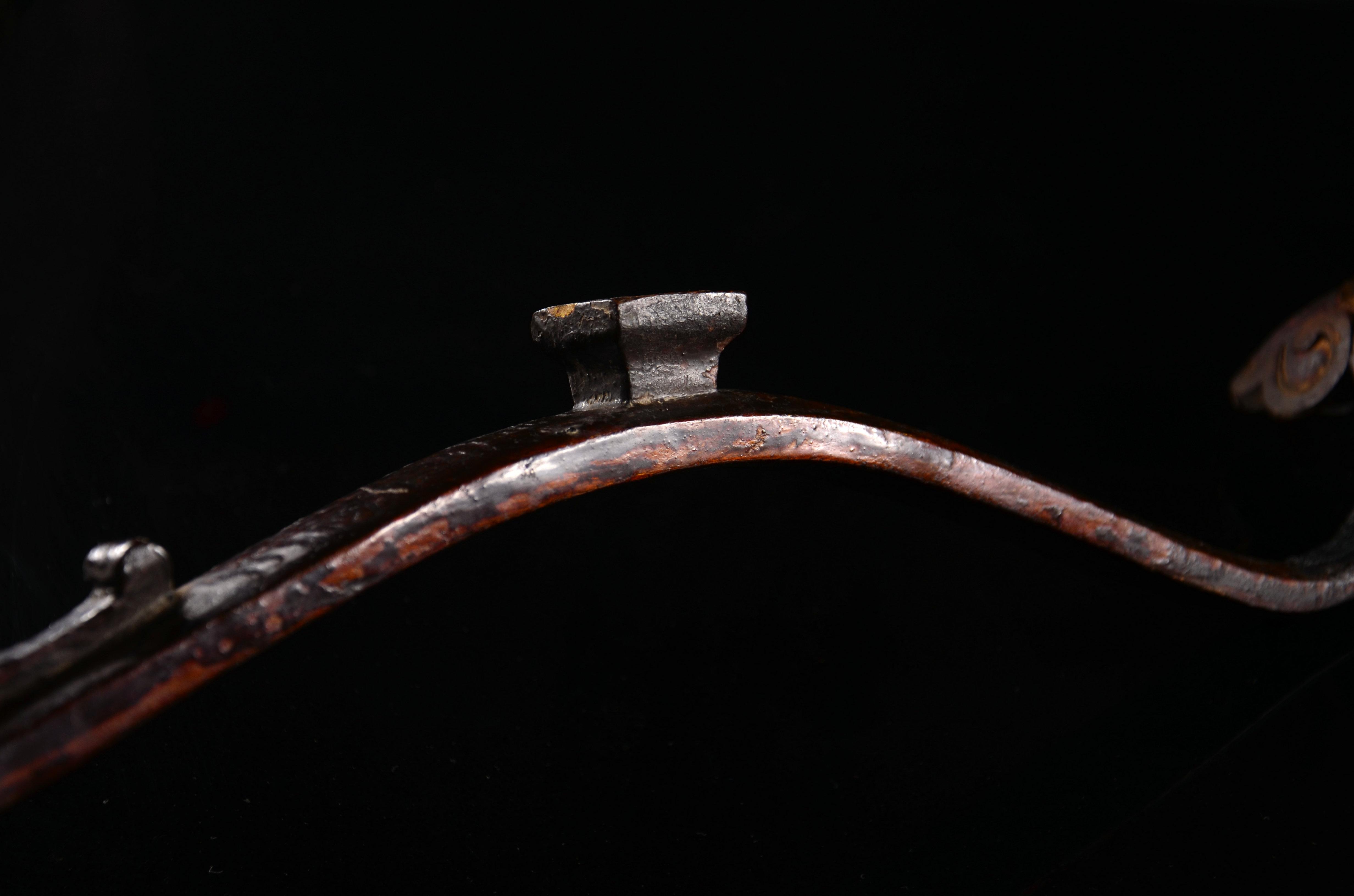 这是一件我比较得意的藏品。原因是南京博物馆有对藏品,是明初开国功臣蕲国公康茂才墓(1313年-1370年)出土的铁制页锤,其形制几乎和我这口一样,但已经锈成标本,只能做展示而无法触碰了。就是这对: