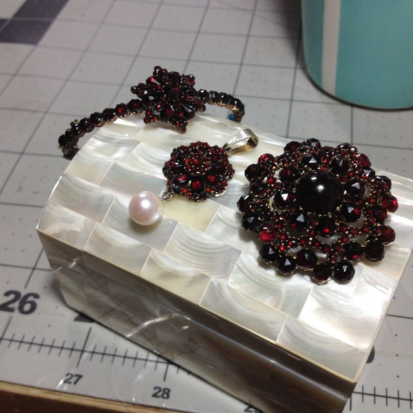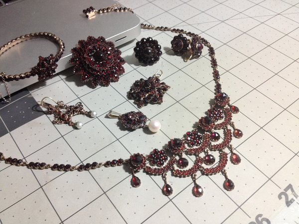 非常喜欢的一套~ 古董波西米亚石榴石首饰~ 好不容易凑齐一套~ 超哥特~