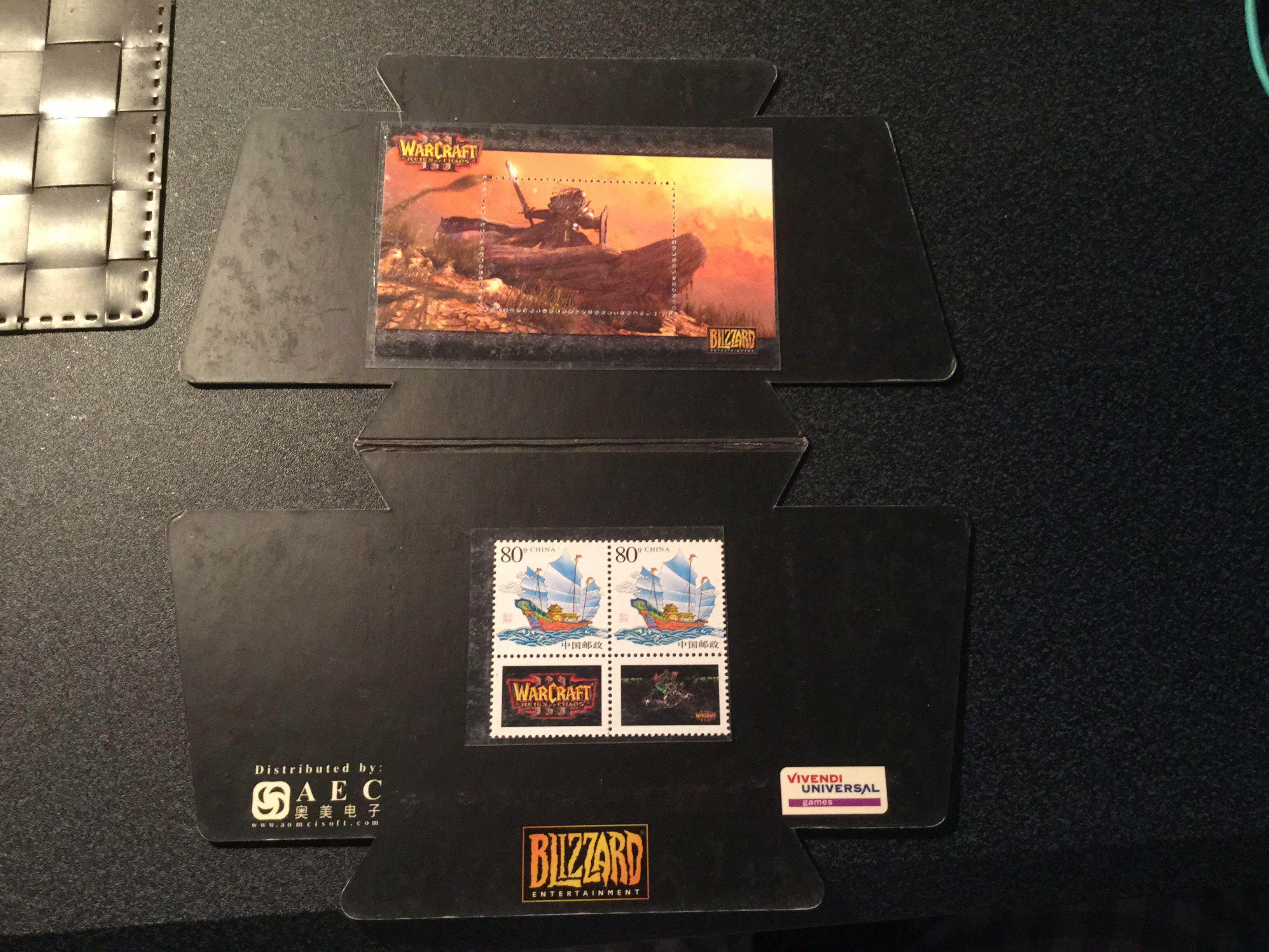 同时作为一个游戏迷+正版狗,限量版主机收的也挺多的,这个常见就不发了。发一个十几年前买魔兽争霸3正版送的纪念邮票吧,不知道这个公司大家还有记忆吗?