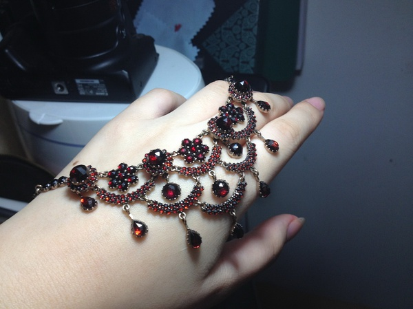 淘货里程碑,古董石榴石月光手链~ 8英镑买回来的。。。咩哈哈哈哈~