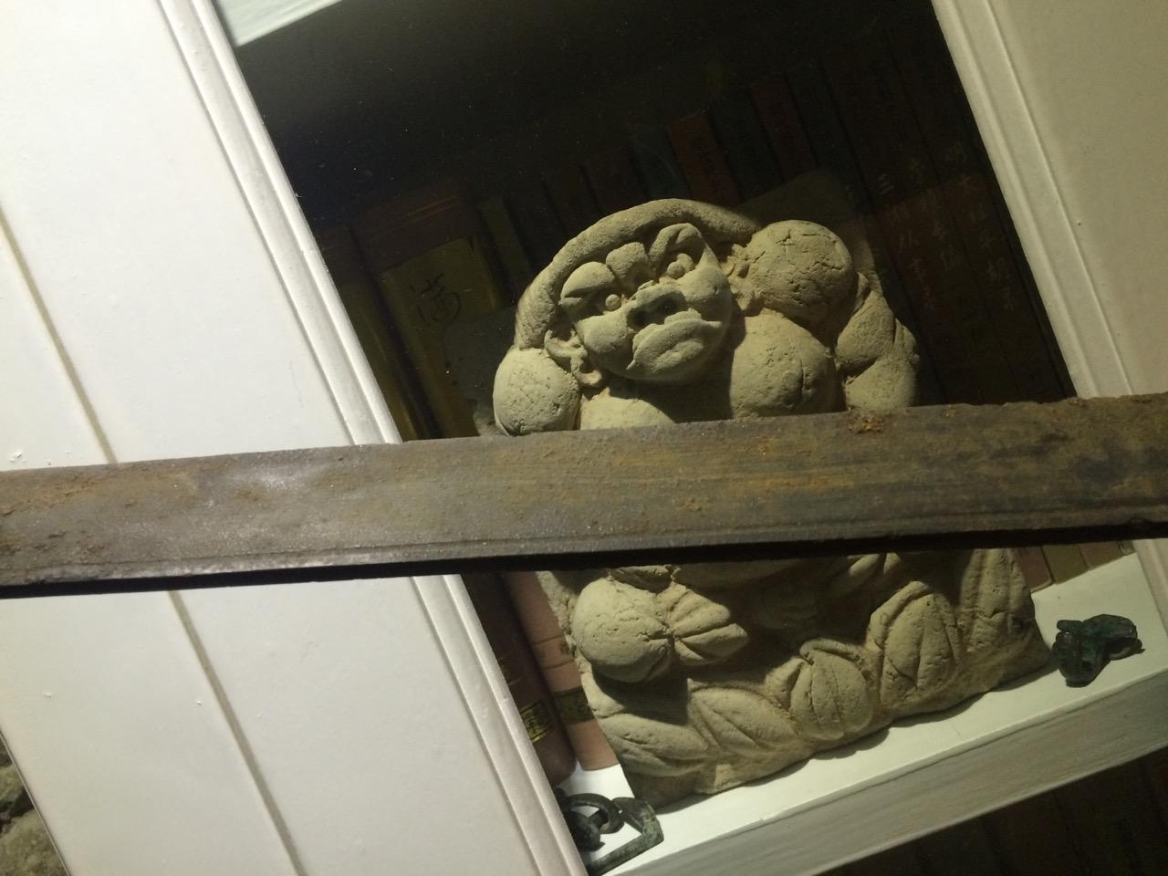 这货我有一对,眉目略有差异,现在杵书架上看守俺的资料书。这对说起来,工不是太好,比较粗,但力度很足,横眉怒目的很传神,于是就收了。