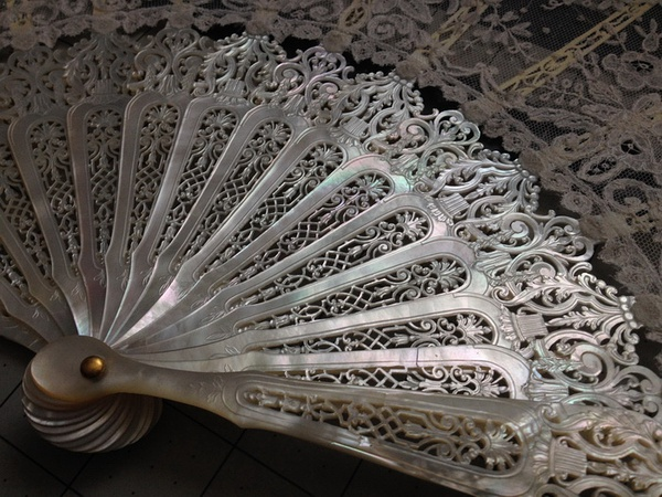 新收到的19世纪的贝母扇子~ 不枉我设闹铃半夜起来守着。。。