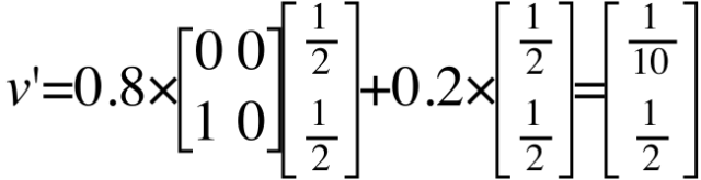 然后,我们设每个页面的初始rank为1/4,4个页面的初始rank构成向量v: