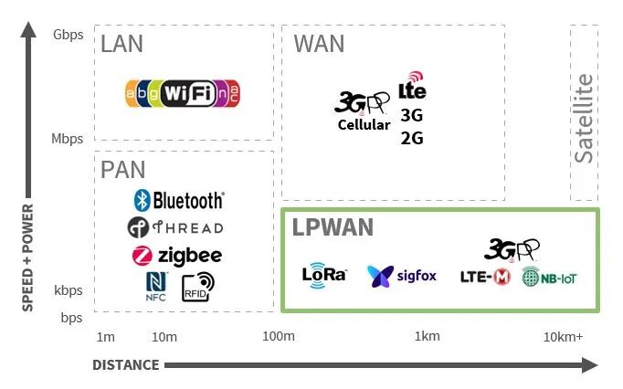 Sigfox通常工作在900MHz,在城市环境中可以高达几公里范围,其覆盖范围高于WiFi,但不及蜂窝网。