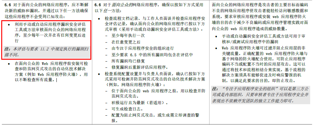 而在金融行业支付卡数据安全标准PCI DSS[16]针对漏洞扫描给出了两个较为明确可操作的定义,如下面2图。