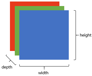 在电脑中,一张图片是数字构成的“长方体”。可用 宽width, 高height, 深depth 来描述,如图。