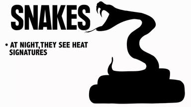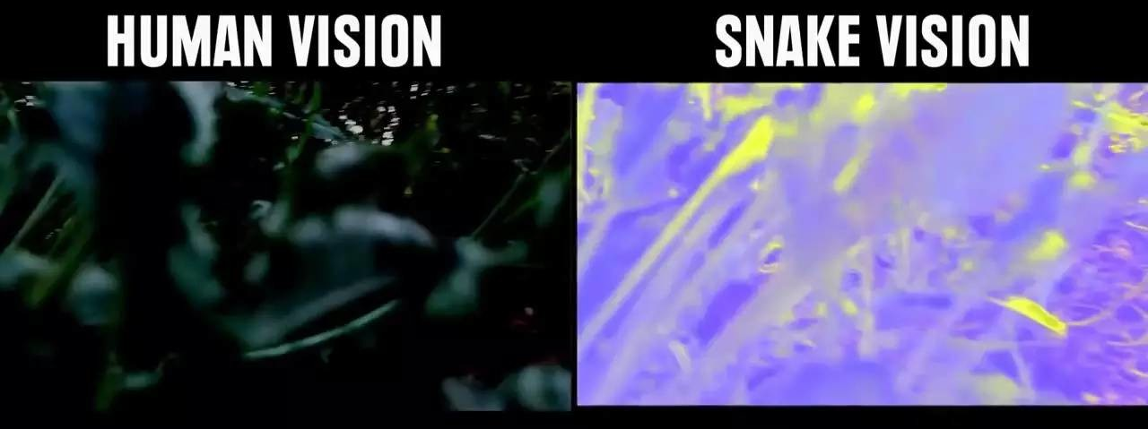 这里引出一条知识:生物所看到的景象并非世界的原貌,而是长期进化出来的适合自己生存环境的一种感知方式。 蛇的猎物一般是夜间行动,所以它就进化出了一种可以在夜间也能很好观察的感知系统,感热。