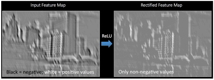 将卷积所得的Feature Map经过ReLU变换(elementwise)后所得到的output就如下图所展示。