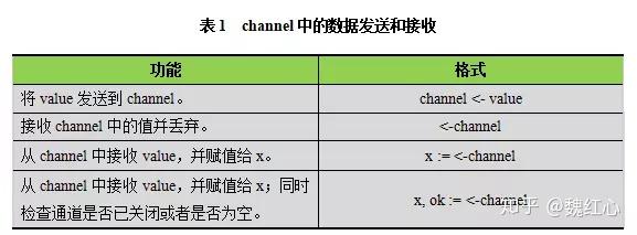 channel通过操作符<-来接收和发送数据,发送和接收数据的语法格式如表1所示。默认情况下,channel接收和发送数据都是阻塞的,除非另一端已经准备好。