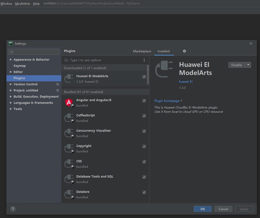 这里我连接的是华为云公有云AI平台。我们实际上使用一个PyCharm ToolKit工具来帮助建立从本地PyCharm IDE到ModelArts的连接通道,本案例我使用MXNet实现手写数字图像识别应用的示例,在本地快速完成代码编写,发布到ModelArts公有云完成模型的训练和模型生成,生成的模型可以进一步快速进行部署(本文没有覆盖该步骤)。安装ToolKit前需要先安装2019.2版本(目前ToolKit仅适配该版本)的PyCharm,下载地址是:https://download.jetbrains.com/python/PyCharm-professional-2019.2.exe?_ga=2.11170941.815358500.1587189937-686177363.1586569505