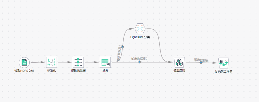 数据规整后,通常需要对数据集进行切分。当数据量比较大的时候,可以切分出训练集、验证集与测试集,直接使用训练集训练模型,用验证集确定最佳的模型参数,用测试集评估模型性能;当数据量较小的时候,通常不切割出专门的验证集,而采用交叉验证的方式确定模型参数,以确保模型得到充分的训练。信用卡申请欺诈检测数据,往往总量特别大,但其中真正发生了欺诈行为的数据却很少,即存在非常严重的数据不均衡问题。因此,在数据集切分过程中,要确保欺诈类的数据能够以一定比例进入到各个数据集中。下面这张截图包含数据分割算子的平台。