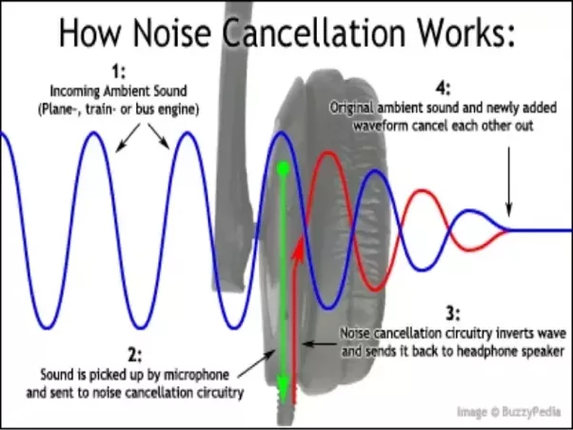 一般主动降噪耳机内部会有一个小的麦克风用来采集外界的声音,通过计算,可以生成一个完全相反的音波,然后和外界的噪音叠加,使得噪音消减。