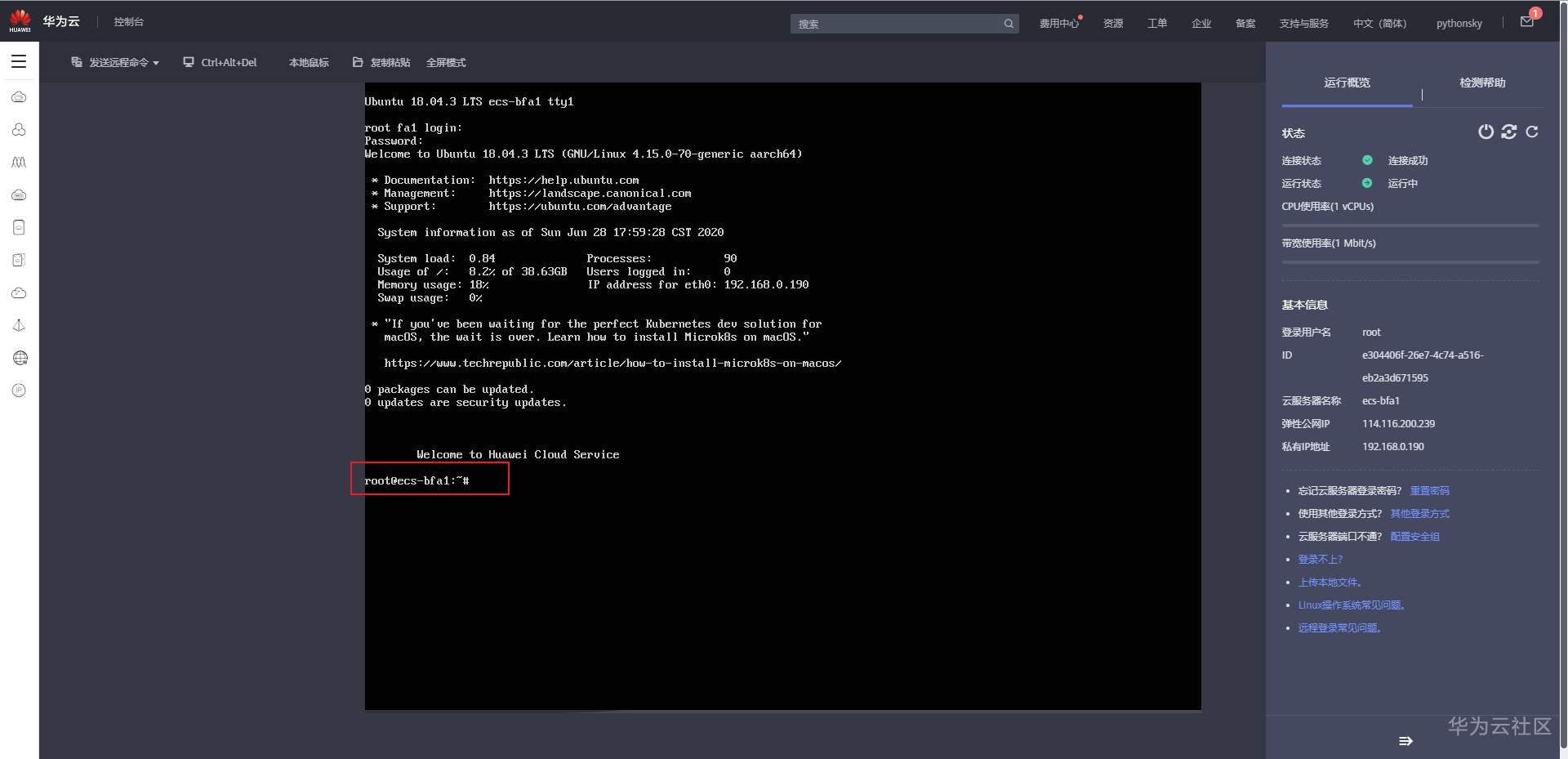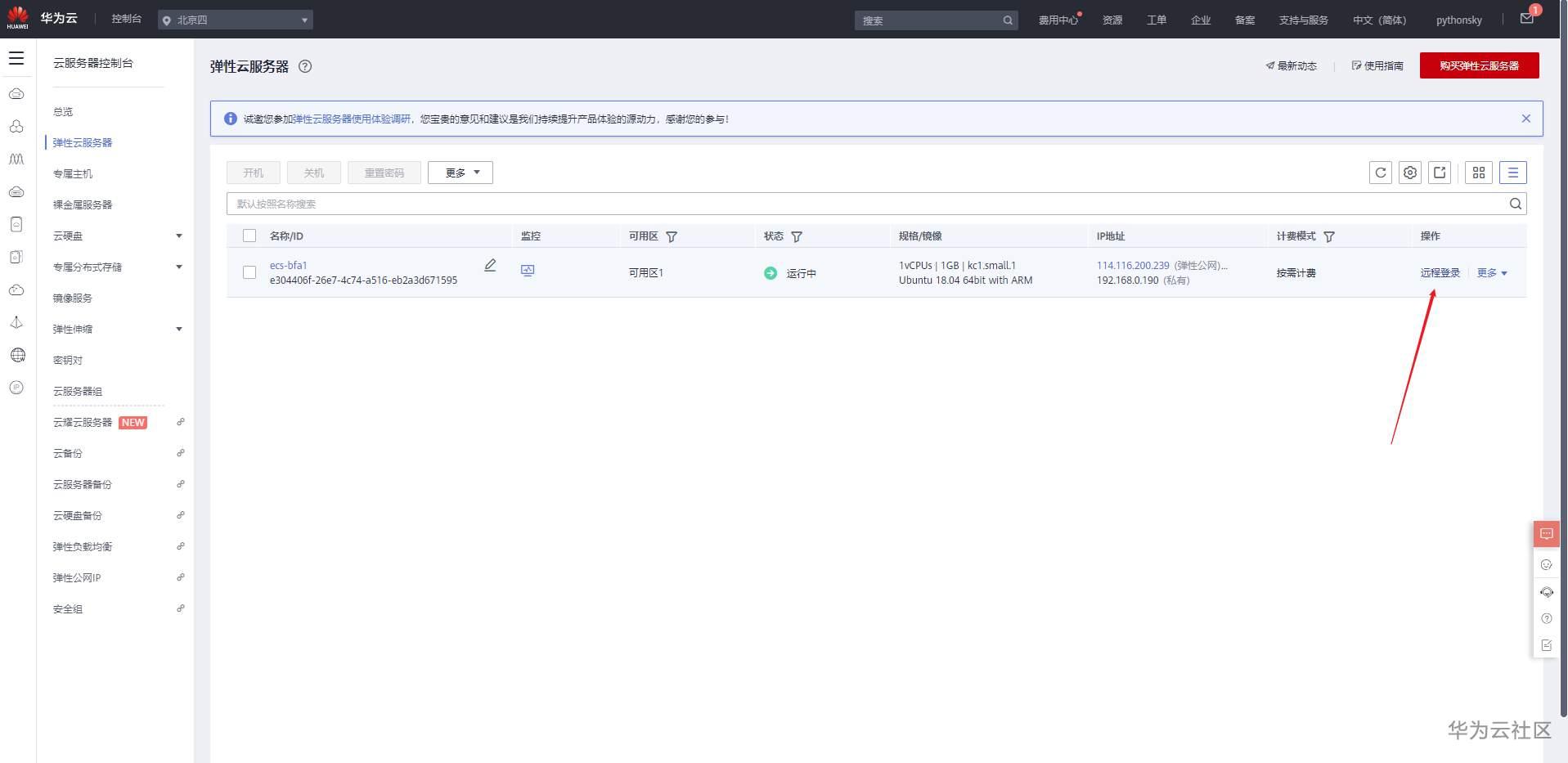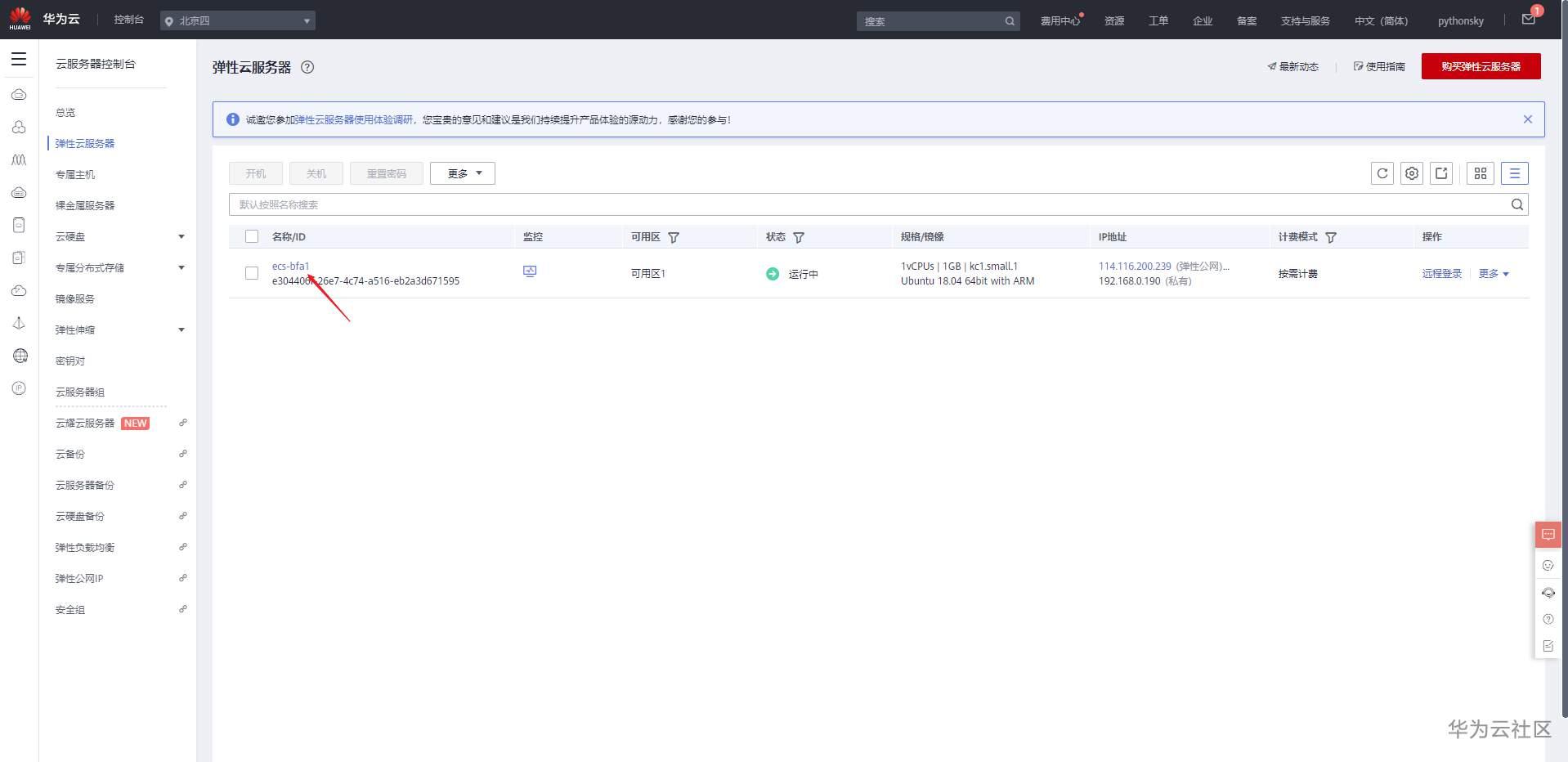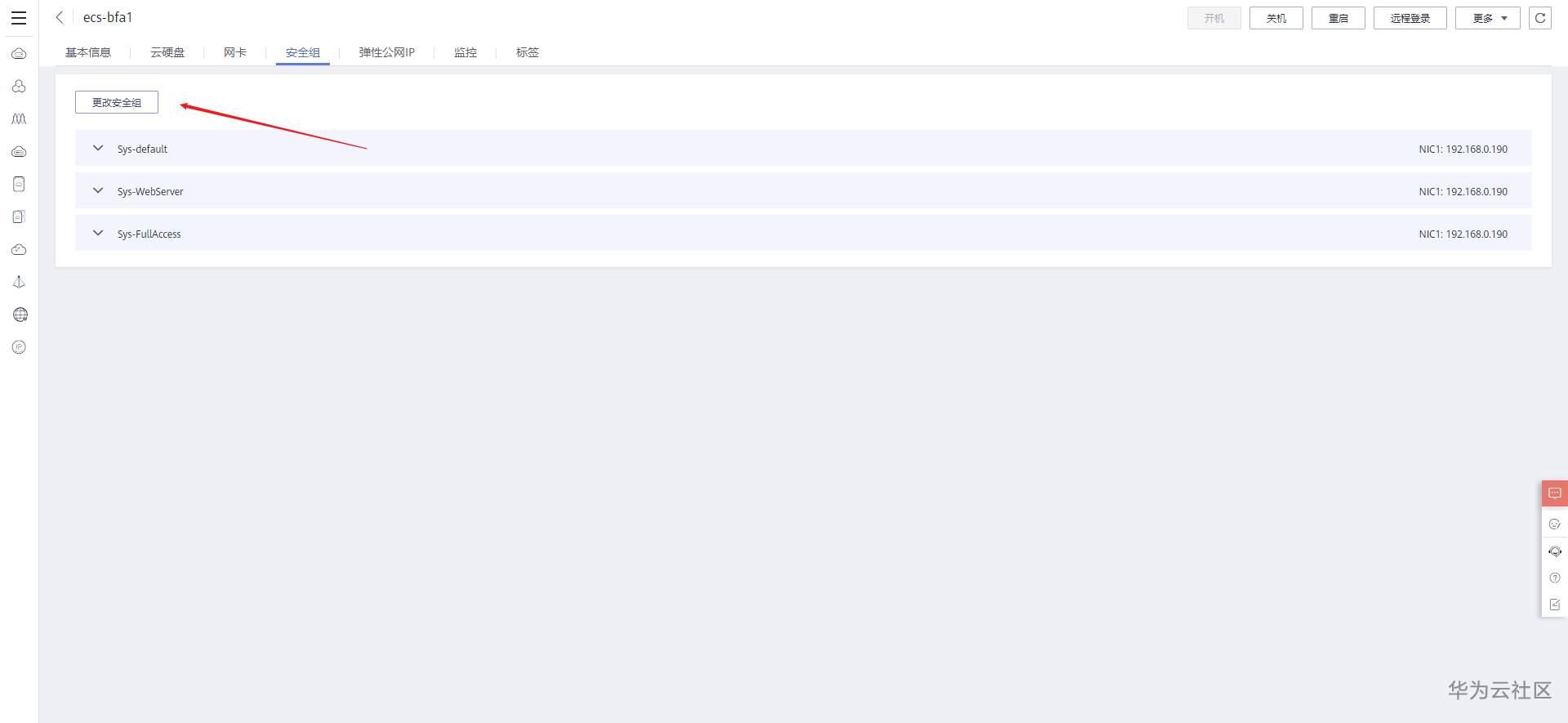 首先修改一下安全组,点击控制台-弹性云服务器,点击实例名字