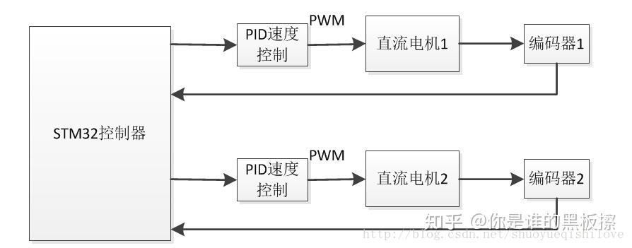 小车使用的电机是12v供电的直流电机,带编码器反馈,这样就可以采用闭环速度控制,这里电机使用PWM驱动,速度控制框图如下: