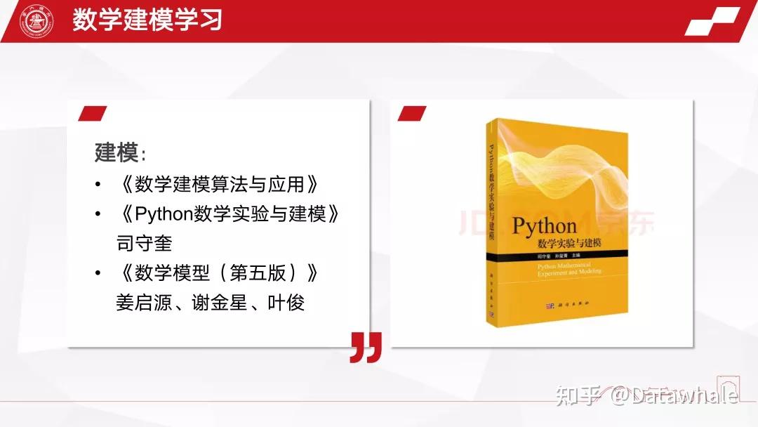 数学建模4个环节的学习资料推荐如下,其中《Python数学实验与建模》是市面上比较少有用Python的建模书,《数学模型(第五版)》是数模经典书籍,可以培养建模思维,内容非常详细。