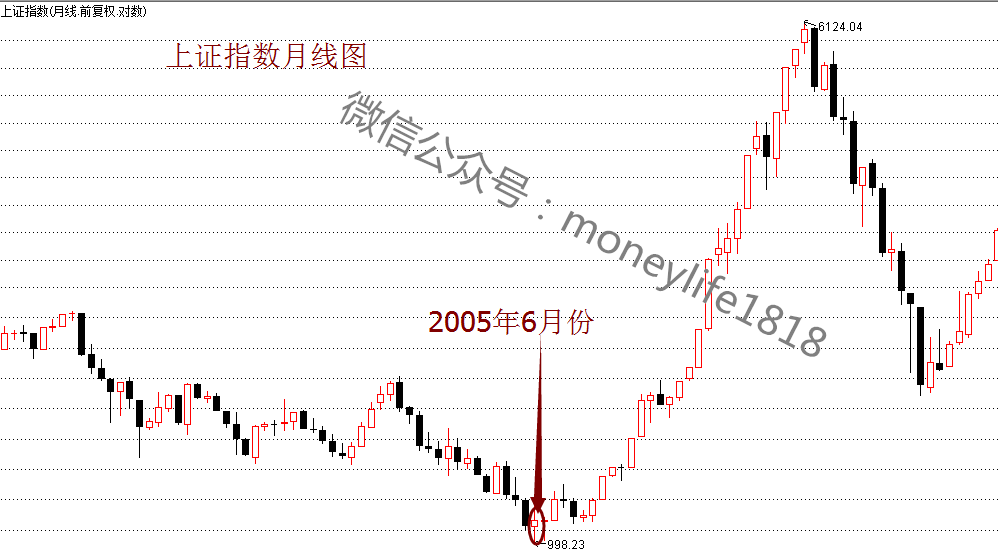 本文是2005年6月18日在深圳“市民投资论坛”的一次演讲。从下图可以看到,2005年6月份就是最低点,然后就开始了波澜壮阔的大牛市。