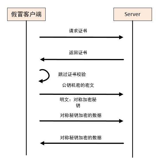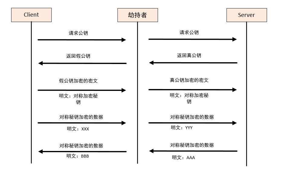 我们假设一个场景,我们生成秘钥对,客户端通过公钥加密数据,服务端通过私钥解密。那么即使用户劫持到公钥,他无法劫持篡改用户的数据。然而从服务端到客户端的链路还是不安全的。