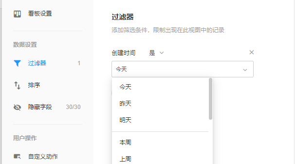通过设置视图的过滤器,我们按照记录的创建时间来筛选,就能轻松得到本日、本周、本月等日报提交情况。