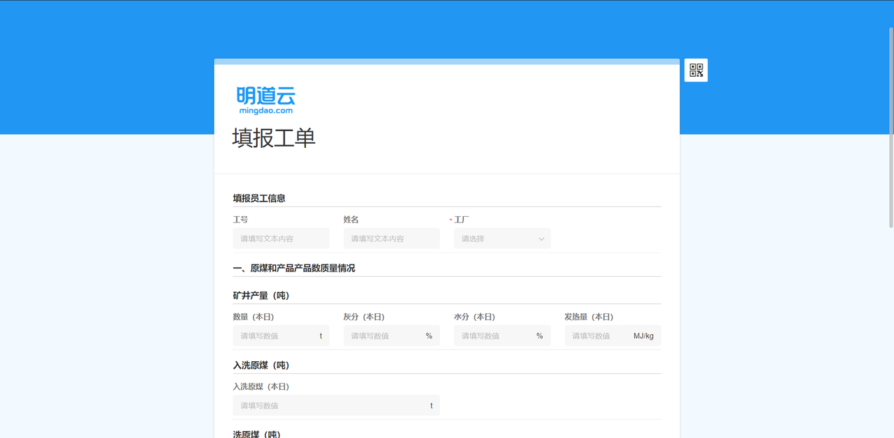 一般来说,工厂的工人数量都很多,给每人分配一个明道云账号的成本太高,并不现实。因此,我推荐使用明道云公开表单功能。员工只需要点击日报填写的链接或者扫码,就可以填写日报了。(公开表单效果见下图)
