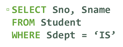 很显然,在执行这条 SQL 语句的时候,DBMS 会扫描 Student 表中的每一条记录,然后把符合 Sdept = \'IS\' 这个条件的所有记录筛选出来,并放到结果集里面去。也就是说 WHERE 关键字的作用就是判断后面的逻辑表达式的值是否为 True。如果为 True,则将当前这条记录(经过 SELECT 关键字处理后)放到结果集里面去,如果逻辑表达式的值为 False 则不放。