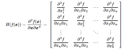 当输入变量为一维时,Hessian矩阵其实可以理解为变量的二阶导数。其Hessian矩阵的定义如下: