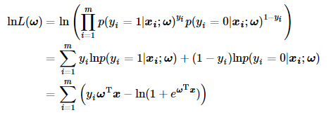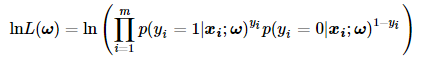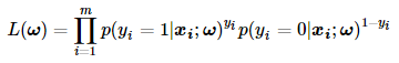 在极大似然法中,我们假设样本之间都是独立同分布的,因此它们的联合概率就是它们各自概率的乘积。因此关于回归系数ω的极大似然函数可由下面公式表示: