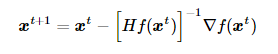 高维情况的牛顿法迭代公式与上面类似,其如下所示: