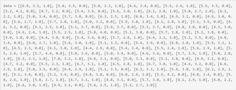 从网上整理了一组数据: 前两列元素是feature;最后一列是label,其值是0或1。