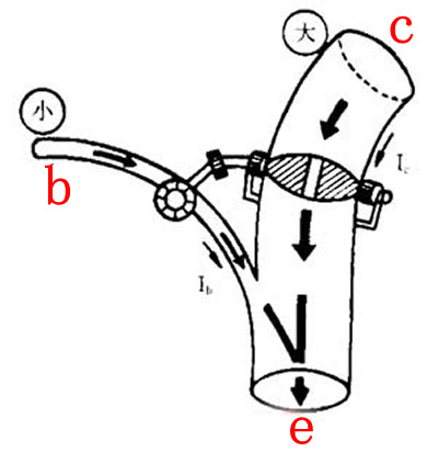 这三个电流。为了容易理解,我们还是用水流比喻电流,如下图所示: