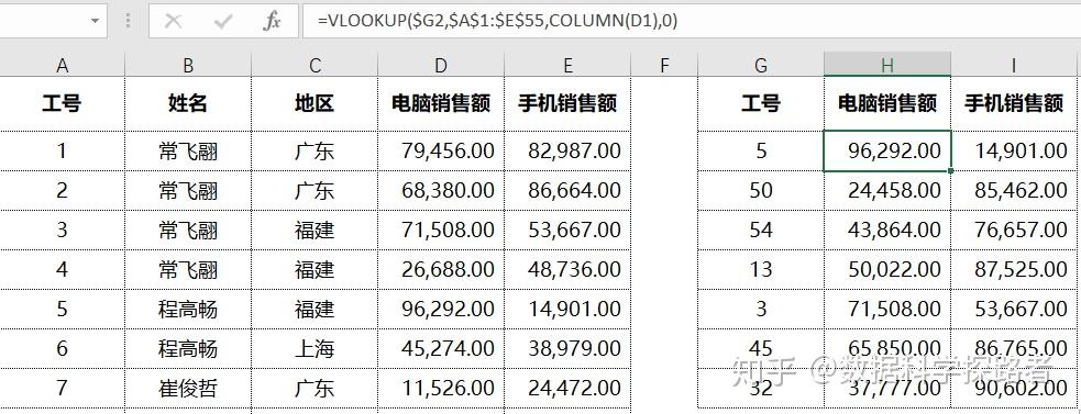 返回多列的固定公式用法: =VLOOKUP(混合引用关键字,查找范围,COLUMN(xx),0)