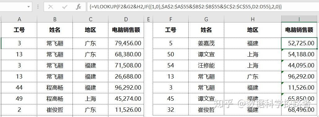 在使用VLOOKUP匹配数据的时候,往往条件不是单一的,是由多个一起组成的,那么也可以利用&将字段拼接起来,并且利用IF数组公式构建出一个虚拟的区域。