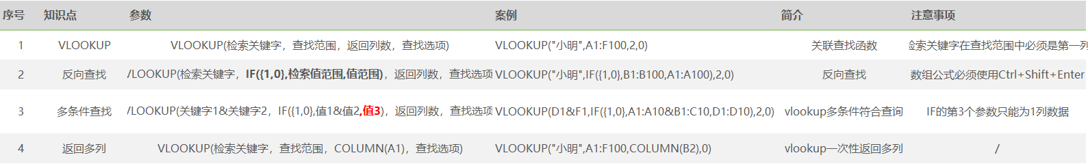 注意事项:IF的第3个参数只能为1列数据;所有使用了数组的公式,不能直接回车,需要使用Ctrl+Shift+Enter,否则会出错。