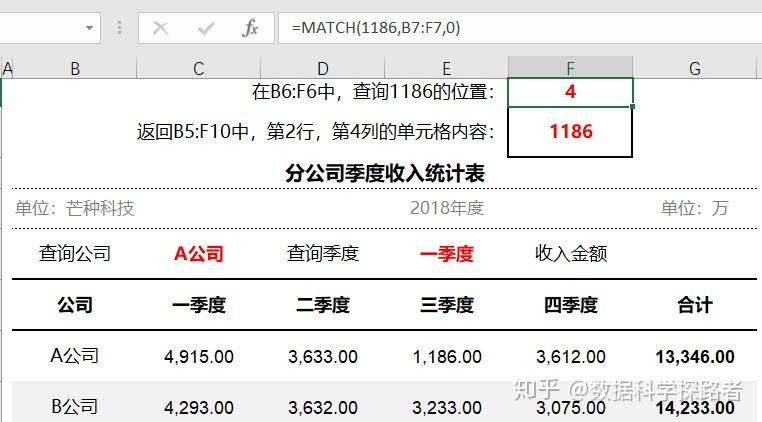 match函数(返回指定内容所在的位置),MATCH(lookup-value,lookup-array,match-type) lookup-value:表示要在区域或数组中查找的值,可以是直接输入的数组或单元格引用。 lookup-array:表示可能包含所要查找的数值的连续单元格区域,应为数组或数组引用。 match-type:表示查找方式,用于指定精确查找(查找区域无序排列)或模糊查找(查找区域升序排列);取值为-1、1、0 ,其中0为精确查找