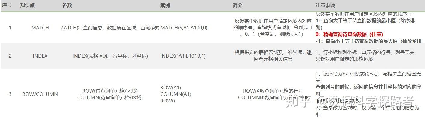 *match、index、row/column函数