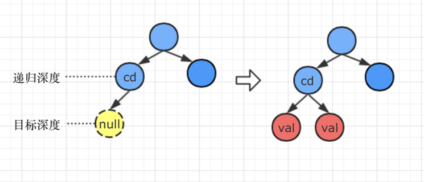 所以呢,当目标深度恰好比当前路径的树的深度再深一层时,处理方式是: