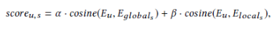 Wg ∈ Rsxn 表示全连接矩阵,Eglobal 为种子用户的 global info。本质上这是一个 self-attention,与群体分布更相似的兴趣将会被提取出来。最终我们令 Elocal , Eglobal 分别与 Eu 求 cosine,加权求和即得到目标用户与种子用户的相似度分数。