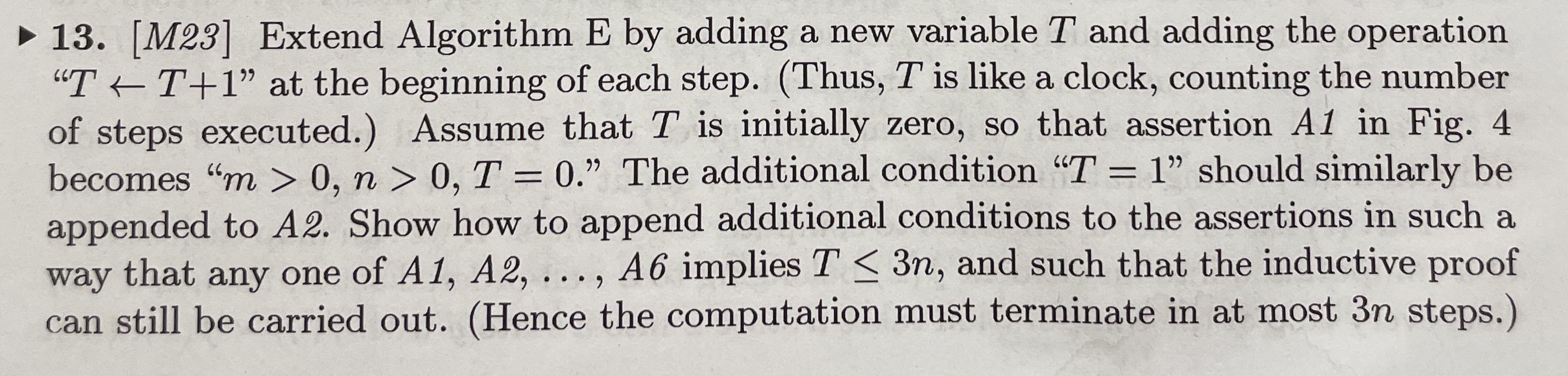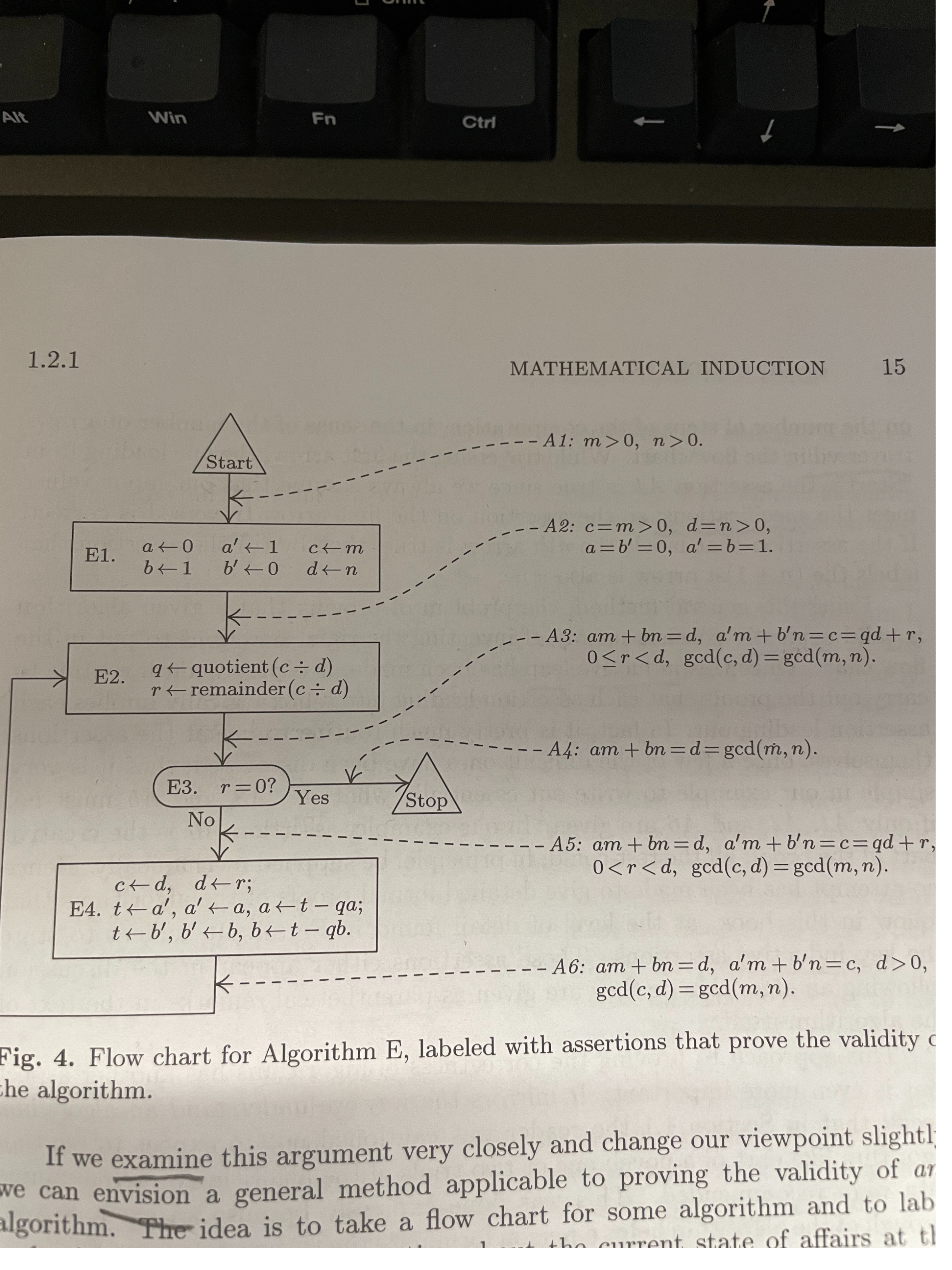 我们真正的理解一个算法是有效的,只有当我们的思想已经隐式的填充了所有的断言,就如上图所示。这也意味着当一个人向另外一个人讲述算法的时候,这些不能被自动推理出来的断言应该被陈述出来。在提E算法的时候,就应该提到断言A6。