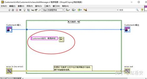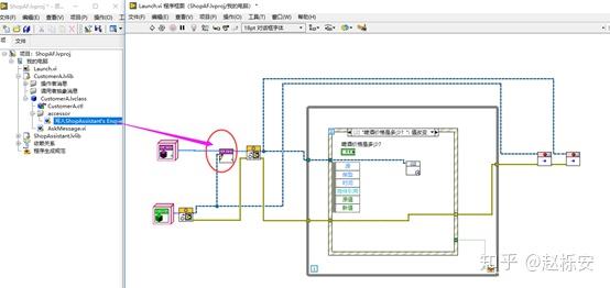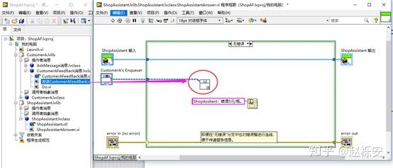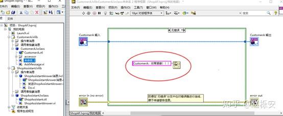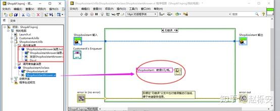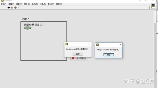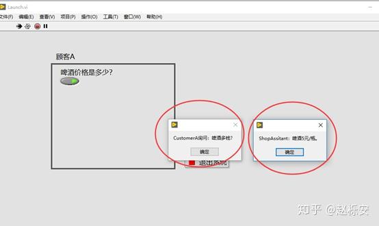 (12)修改Launch.vi,将ShopAssistant队列传递进去,运行后,弹出两个对话框,即完成了一个Customer与ShopAssistant的对话。