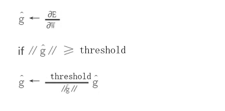 clip c(梯度裁剪): 限制最大梯度,其实是value = sqrt(w1^2+w2^2….),如果value超过了阈值,就算一个衰减系系数,让value的值等于阈值: 5,10,15