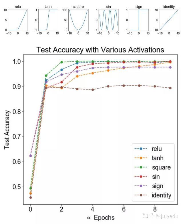 但如果ReLU激活函数被线性函数所替代之后,神经网络将失去模拟非线性函数的能力。